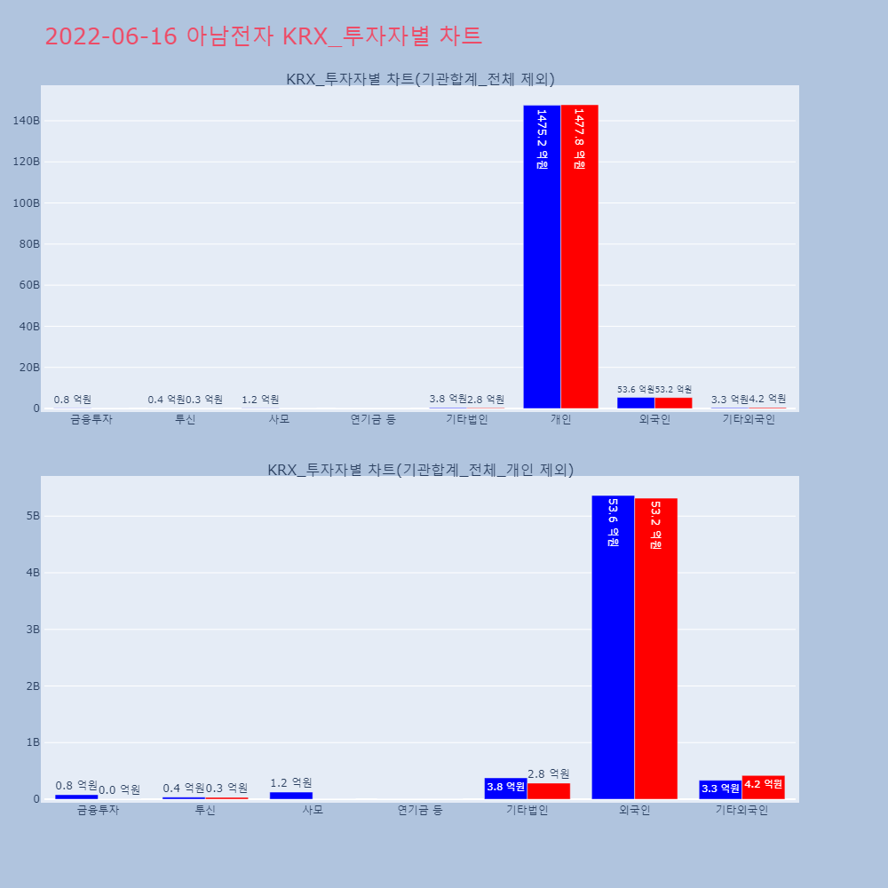 | 투자기관 | 거래량_매도 | 거래량_매수 | 거래량_순매수 | 거래대금_매도 | 거래대금_매수 | 거래대금_순매수 |