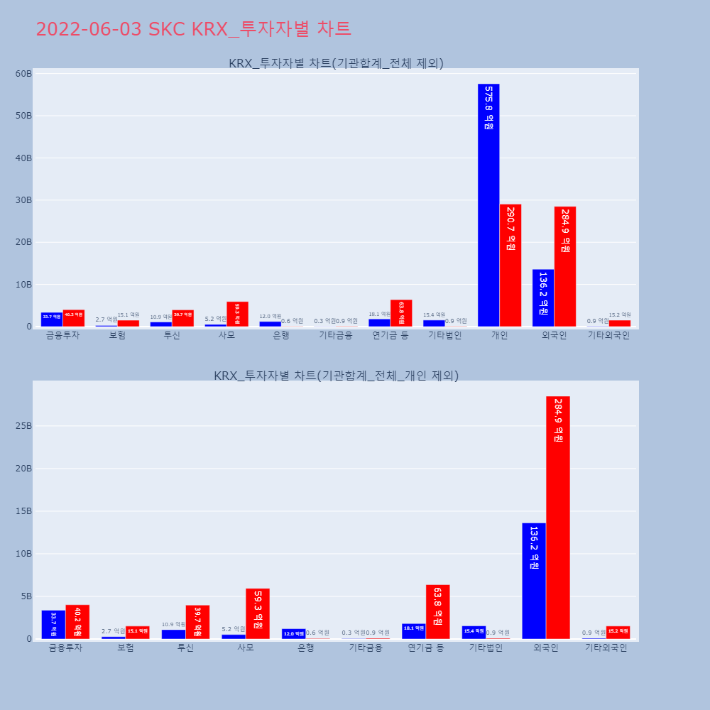 | 개인 | 392,785 | 385,760 | -7,025 | 42,261,122,000 | 41,459,534,500 | -801,587,500 |