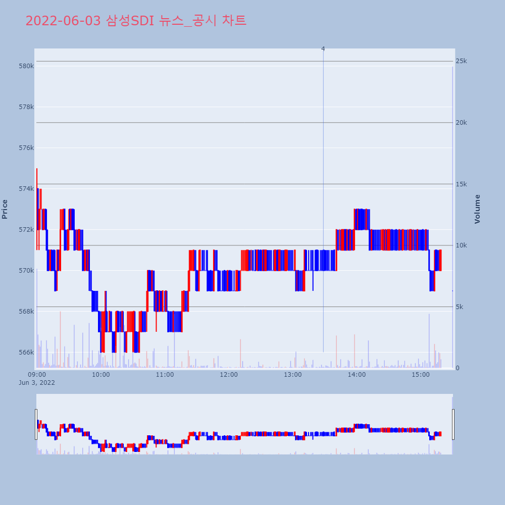 | 3 | 삼성전자(005930) 하락 출발 -1.04% 제목 : 삼성전자(005930)하락 출발 -1.04%기 | 인포스탁 | 삼성전자 | 2022-06-02 09:00:23 |