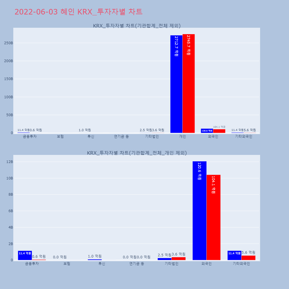 | 투자기관 | 거래량_매도 | 거래량_매수 | 거래량_순매수 | 거래대금_매도 | 거래대금_매수 | 거래대금_순매수 |