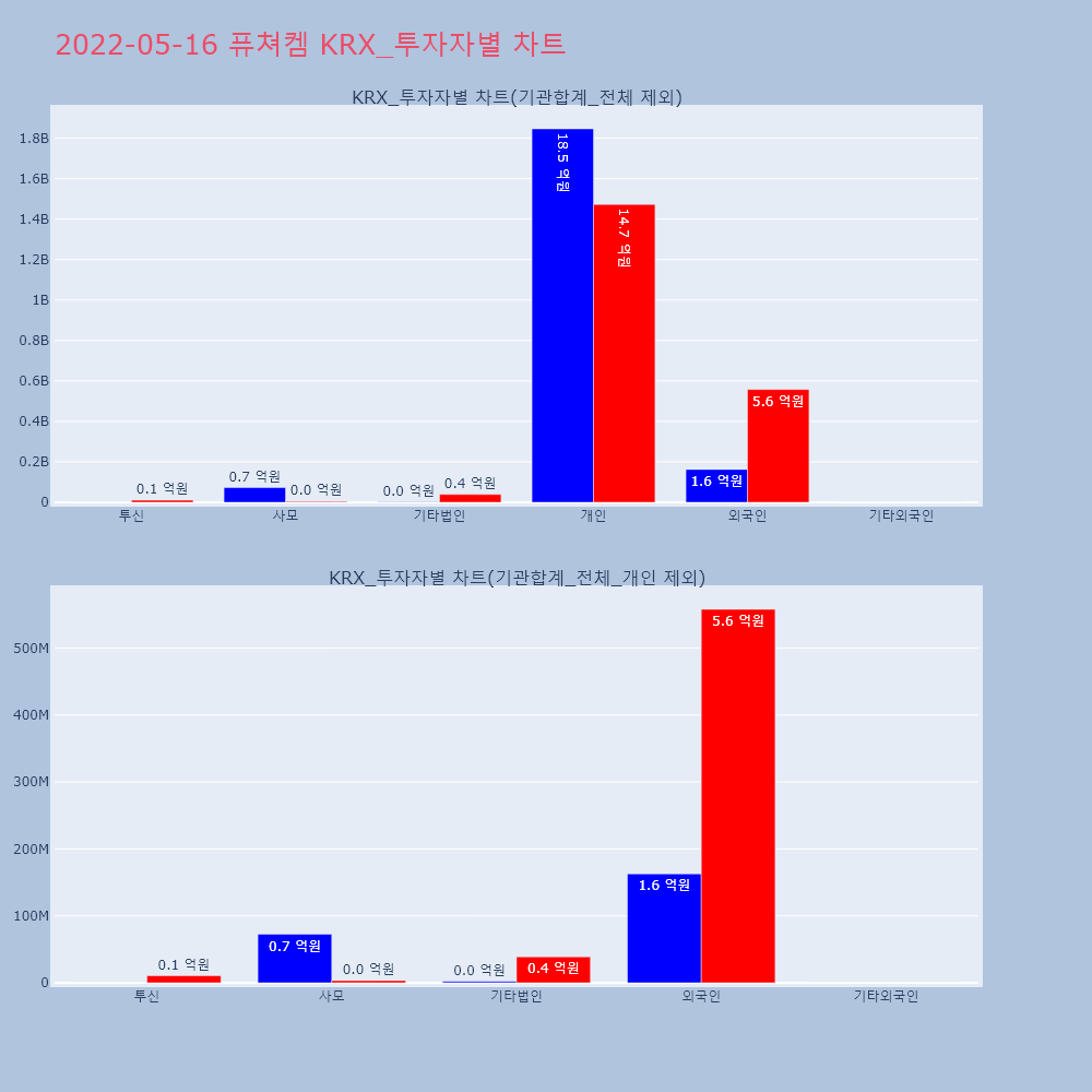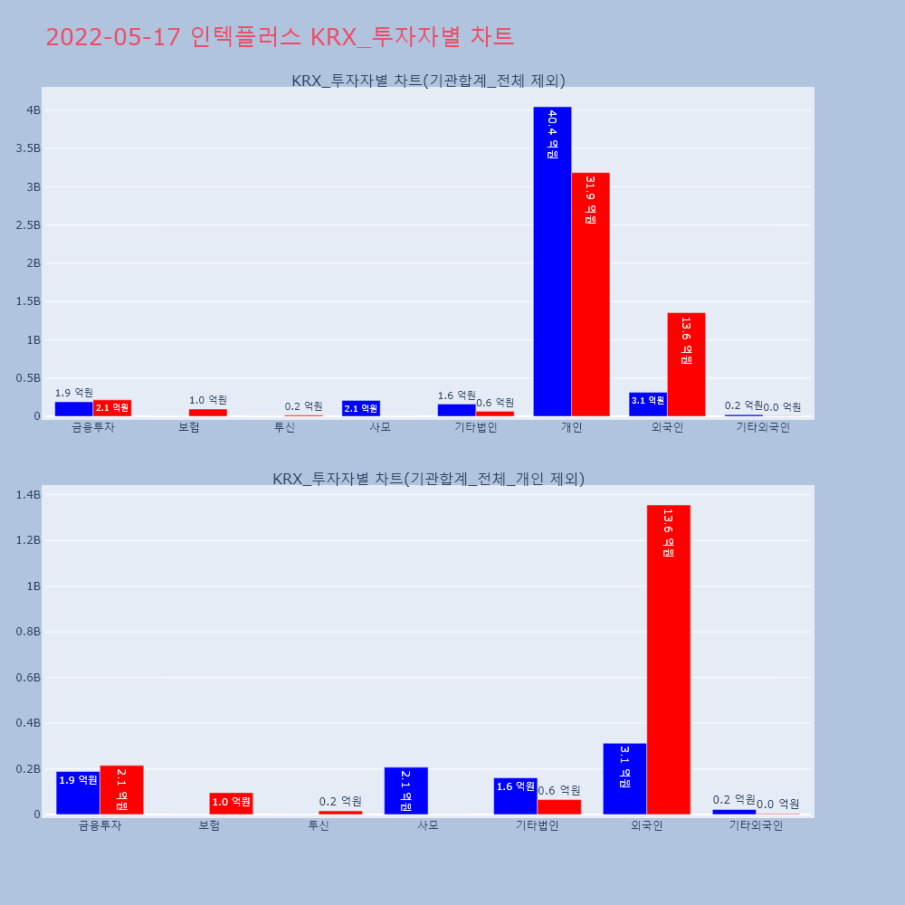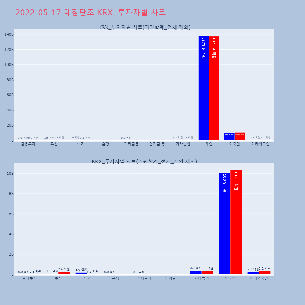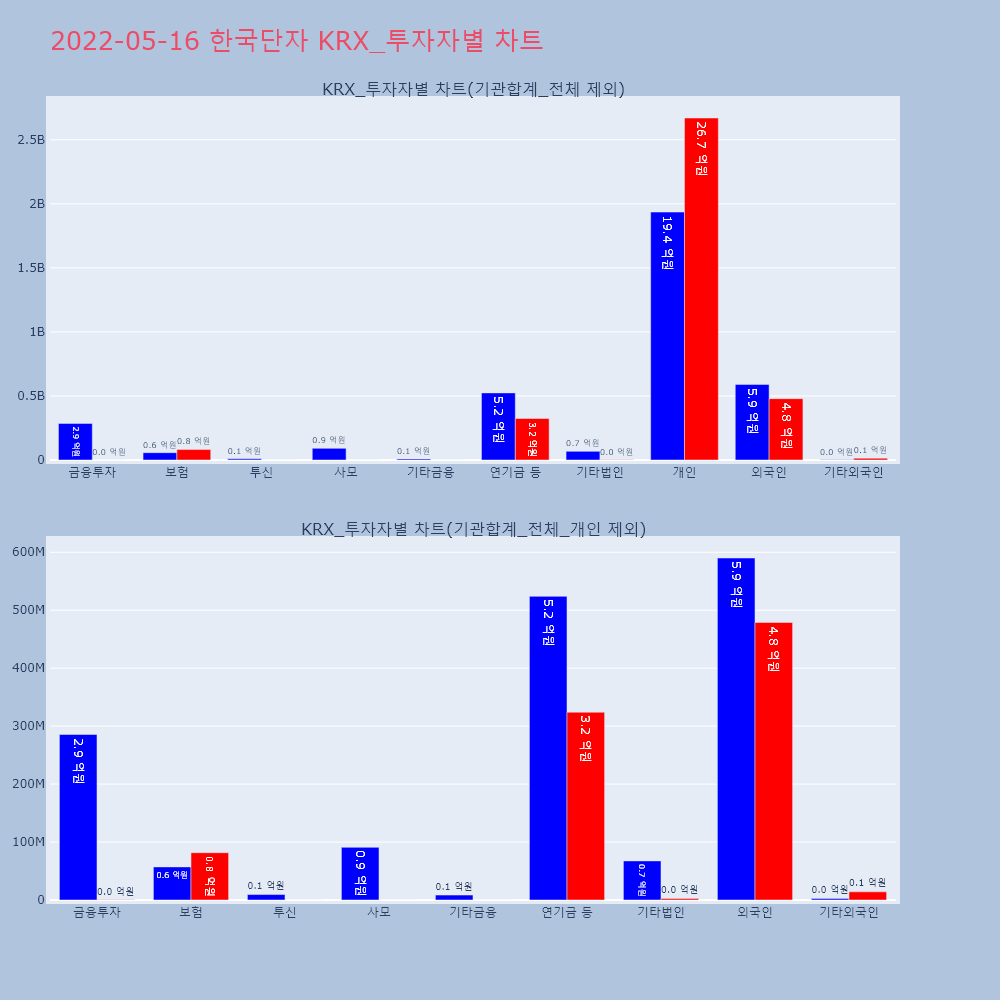 | 투자기관 | 거래량_매도 | 거래량_매수 | 거래량_순매수 | 거래대금_매도 | 거래대금_매수 | 거래대금_순매수 |
