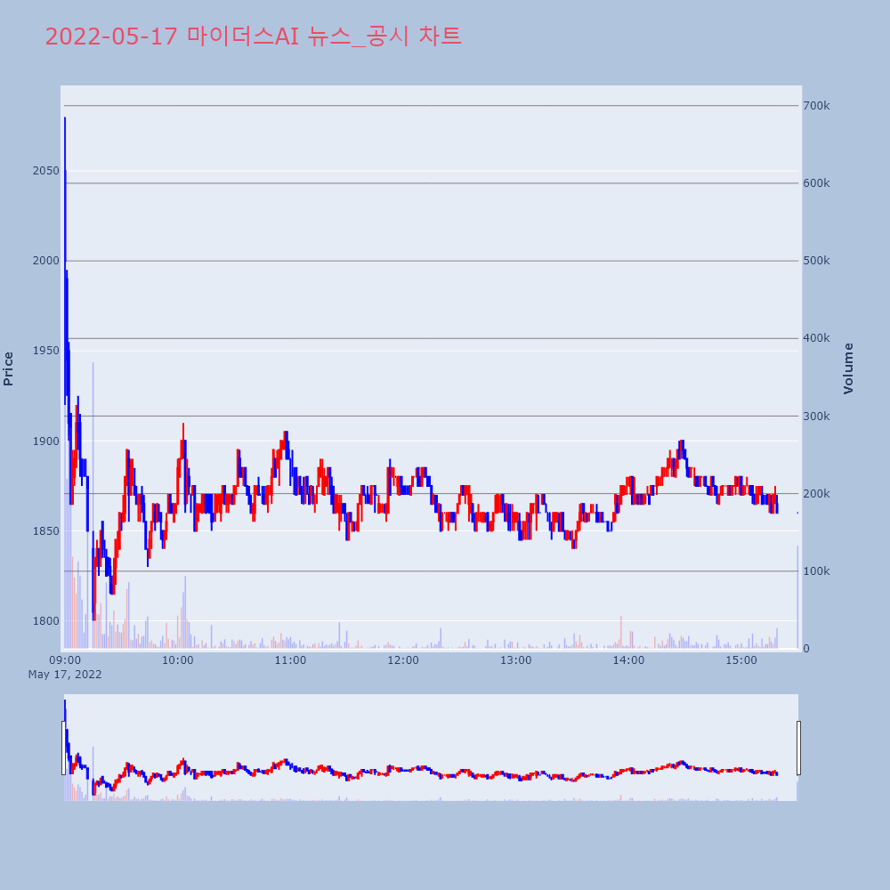 | 5 | 마이더스AI, 관리종목 해제 소식에 주가 '훨훨'마이더스AI가 관리종목에서 해제되자 주가가 급등하고 | 한경/증권 | 마이더스AI | 2022-05-16 09:44:57 |