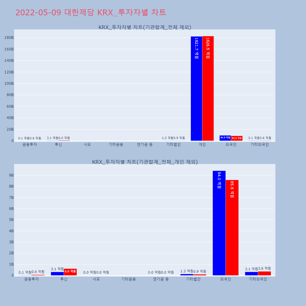 | 투자기관 | 거래량_매도 | 거래량_매수 | 거래량_순매수 | 거래대금_매도 | 거래대금_매수 | 거래대금_순매수 |