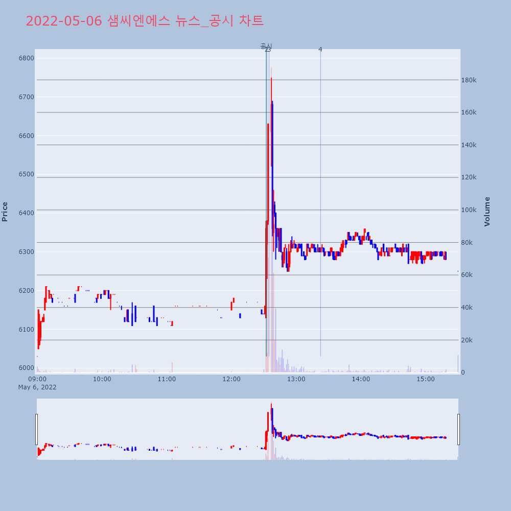 | 2022-05-06 15:40:00 | 20220506900250 | 단일판매ㆍ공급계약체결(자율공시) |