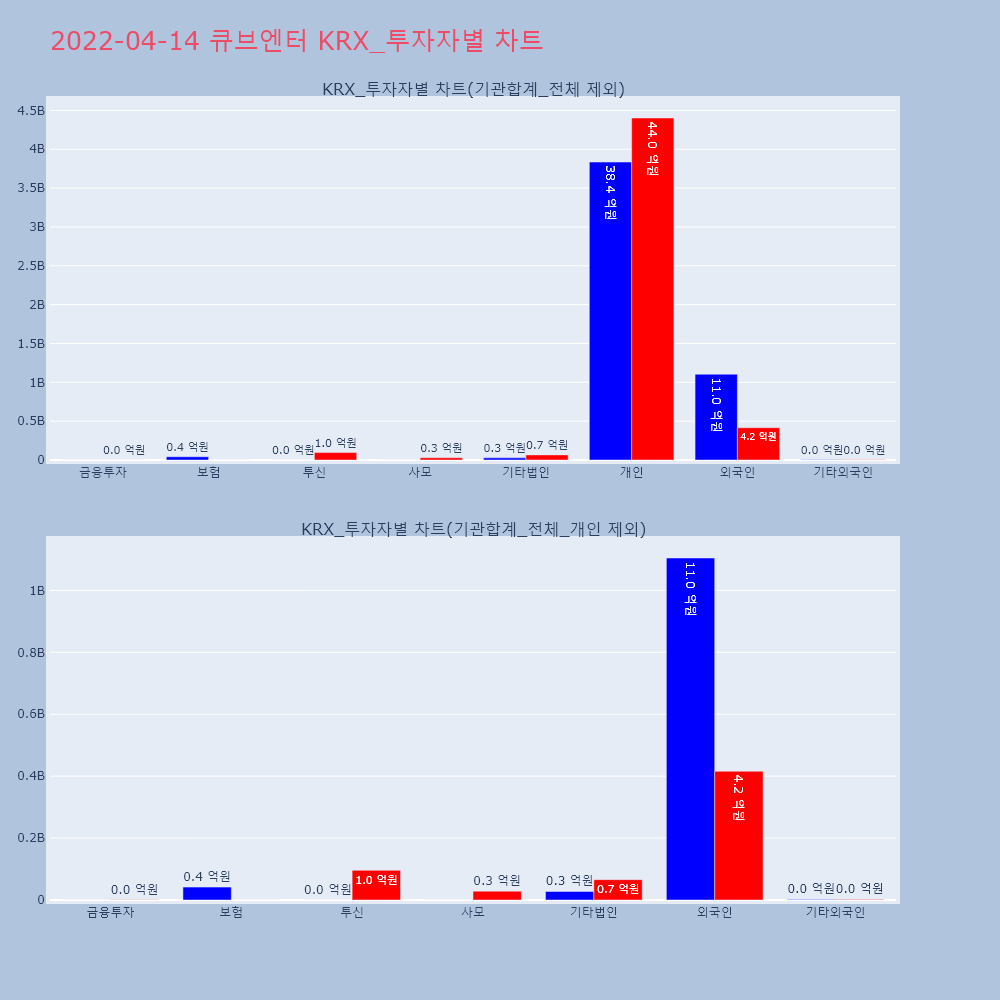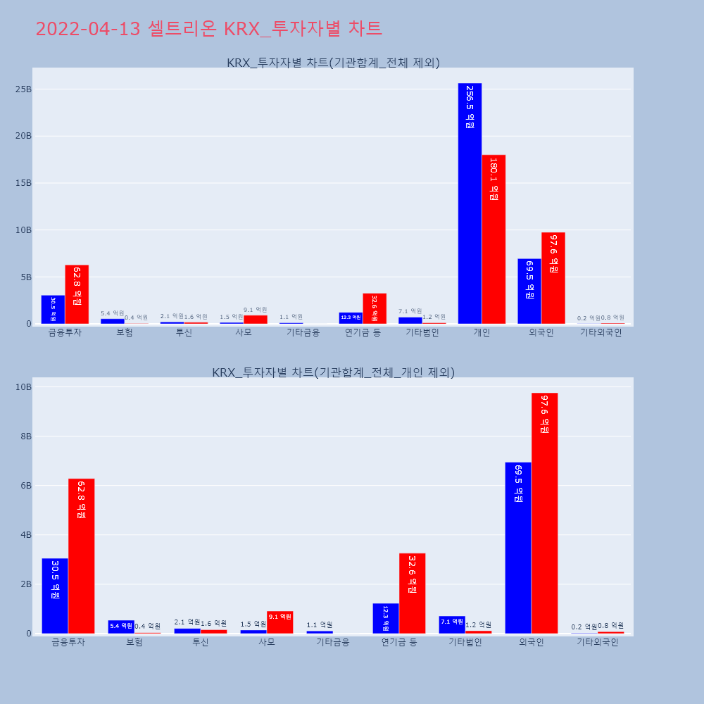 | 투자기관 | 거래량_매도 | 거래량_매수 | 거래량_순매수 | 거래대금_매도 | 거래대금_매수 | 거래대금_순매수 |