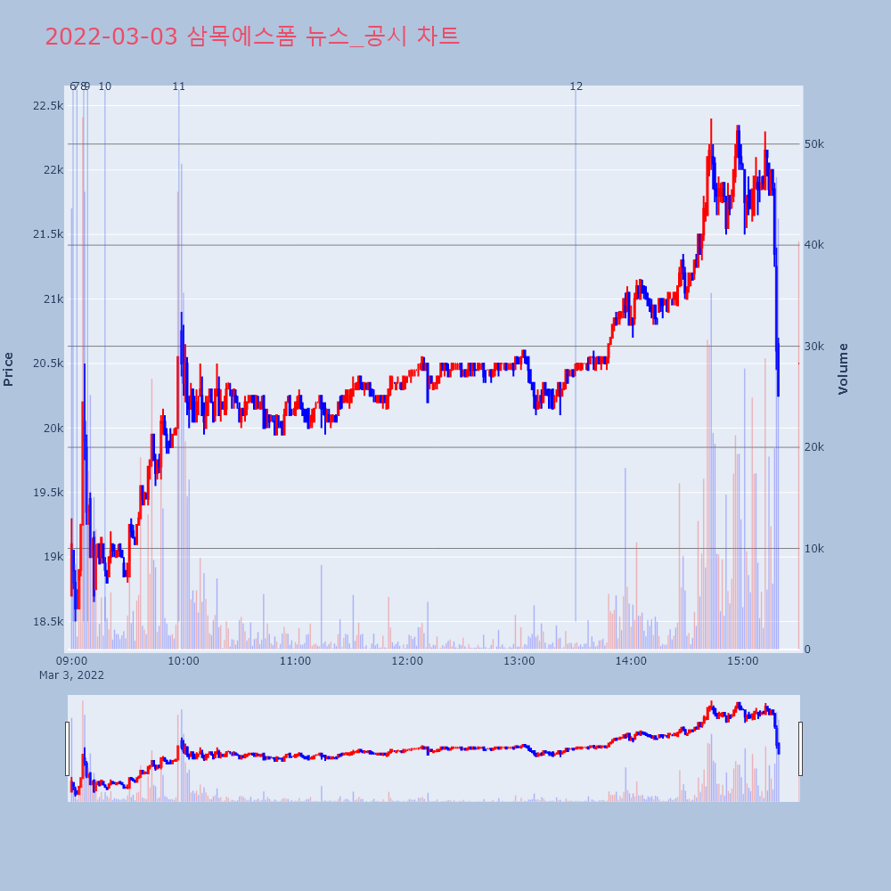 | 13 | 삼목에스폼, +11.71% VI 발동삼목에스폼(018310)이 VI가 발동했다. 전일 대비 | 조선경제 | 삼목에스폼 | 2022-03-04 10:01:43 |