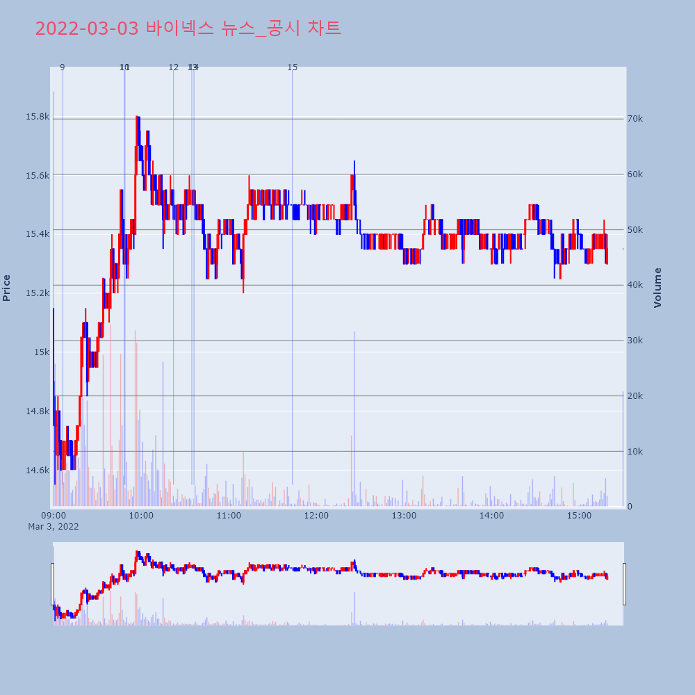 | 15 | [특징주] 바이온, 김병준 대표 자사주 장내 매수에 20%대↑ 제목 : [특징주] 바이온, 김병준 대표 자사주 장내 | 인포스탁 | 바이온 | 2022-03-04 14:04:06 |