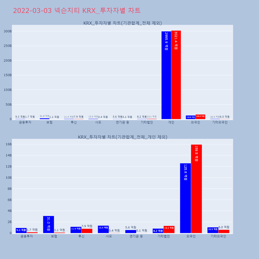 | 투자기관 | 거래량_매도 | 거래량_매수 | 거래량_순매수 | 거래대금_매도 | 거래대금_매수 | 거래대금_순매수 |