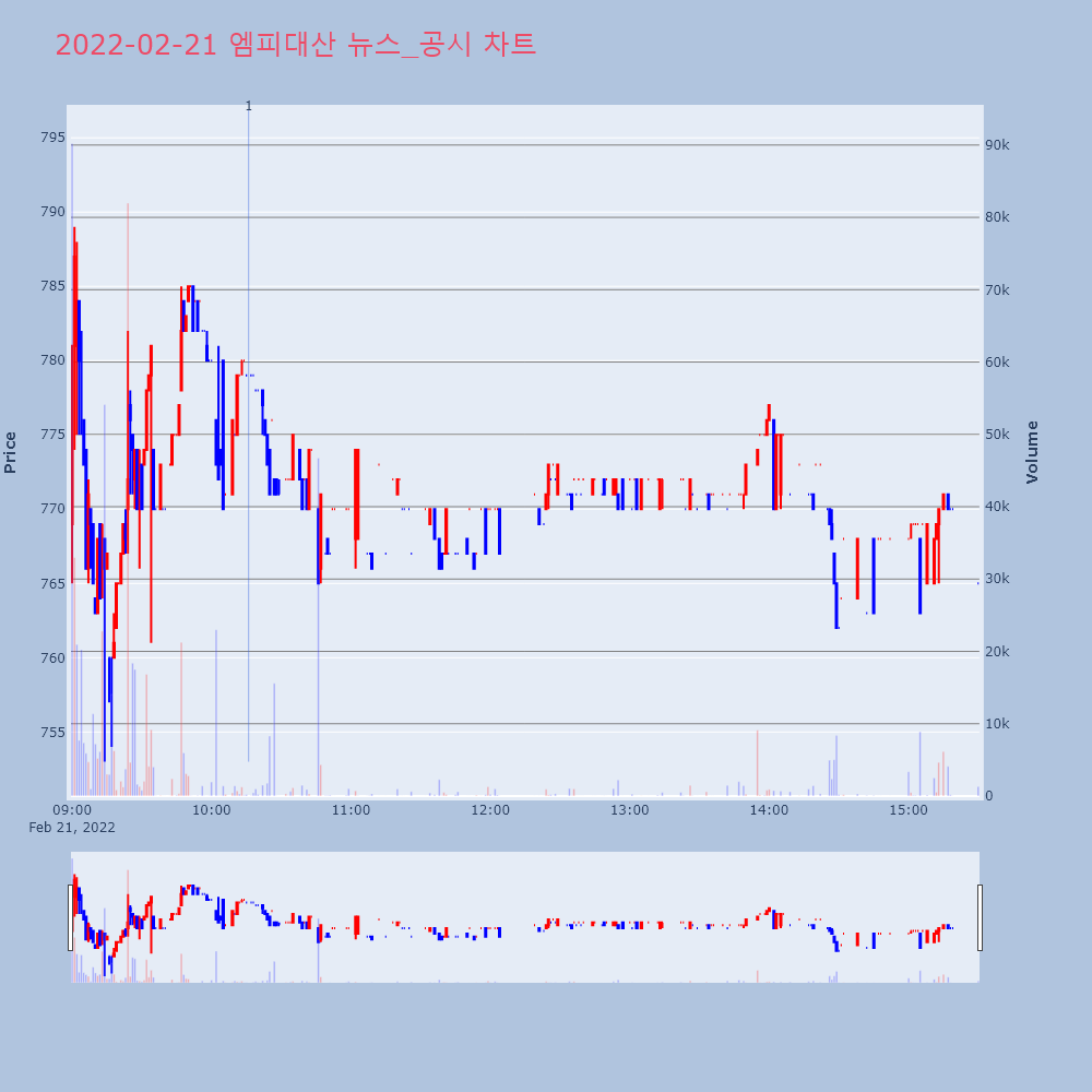 | 10 | [특징주] 자발적 상장폐지 결정한 맘스터치, 장 초반 '상한가' 직행 제목 : [특징주] 자발적 상장폐지 결정한 맘스터치, | 인포스탁 | 맘스터치 | 2022-02-21 09:16:31 |