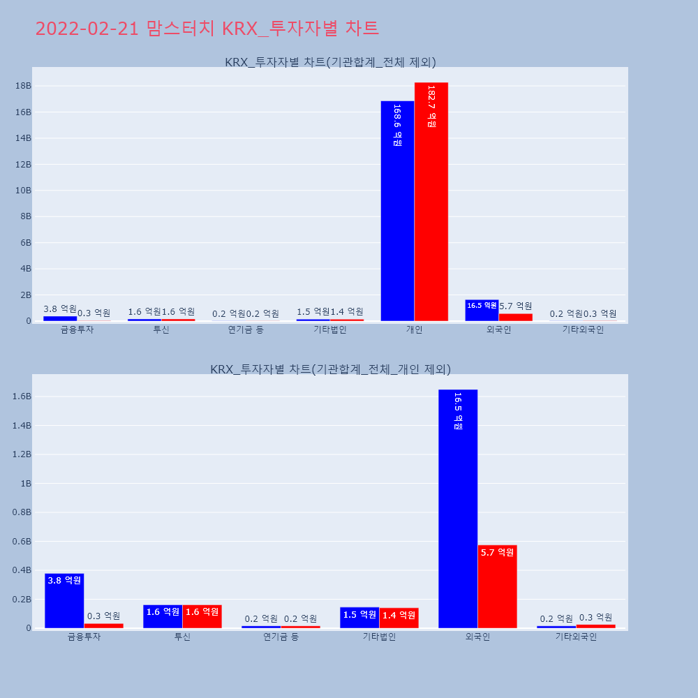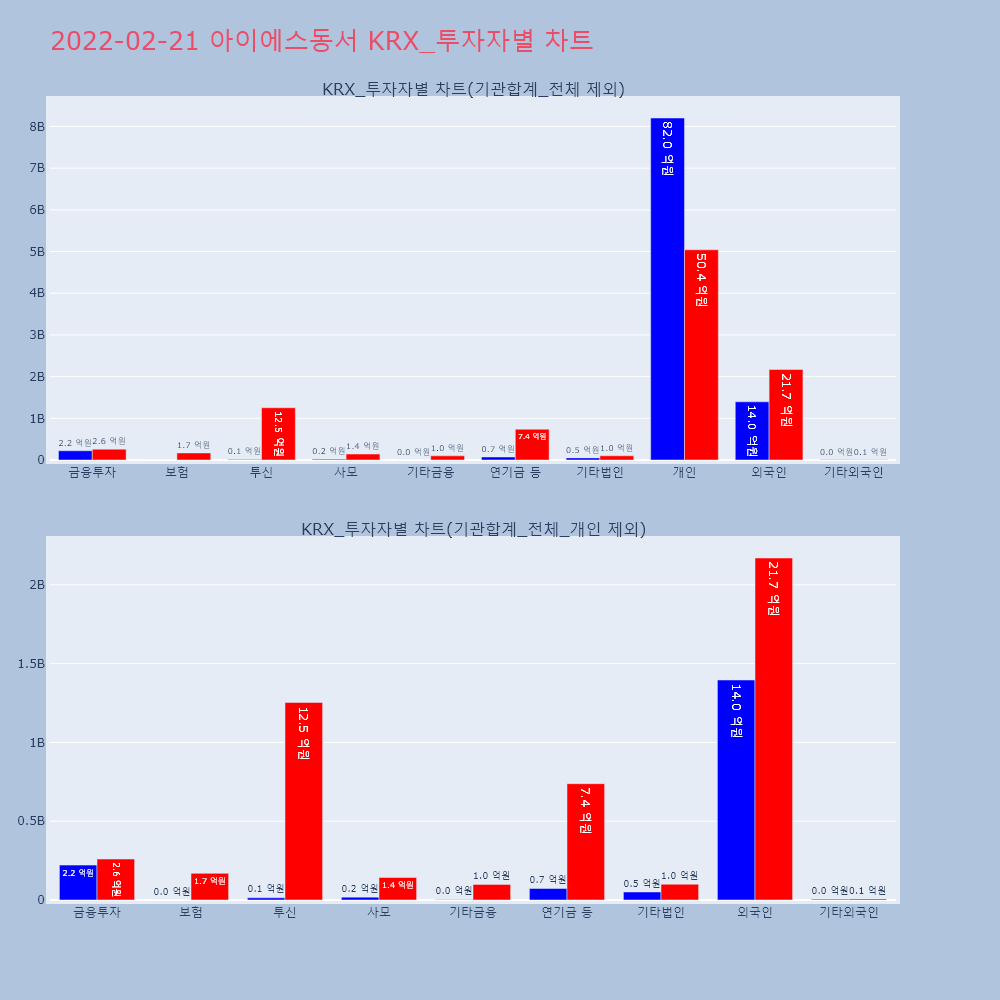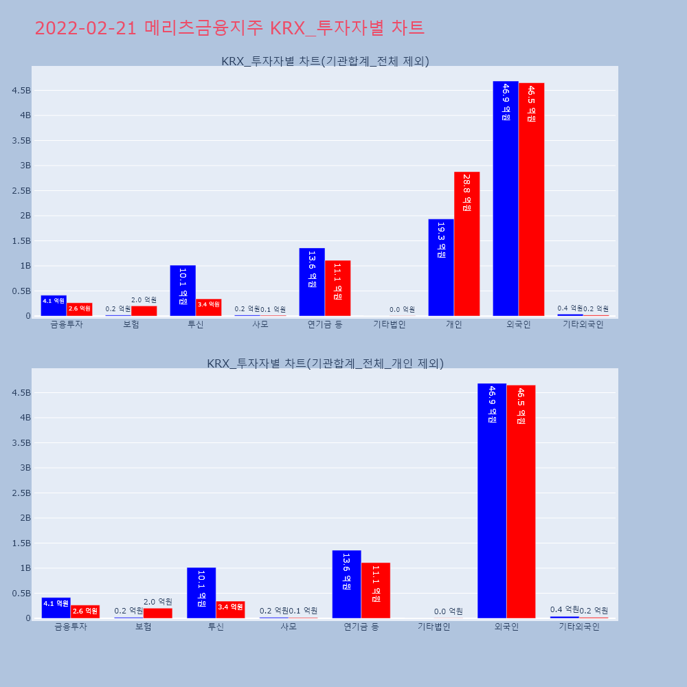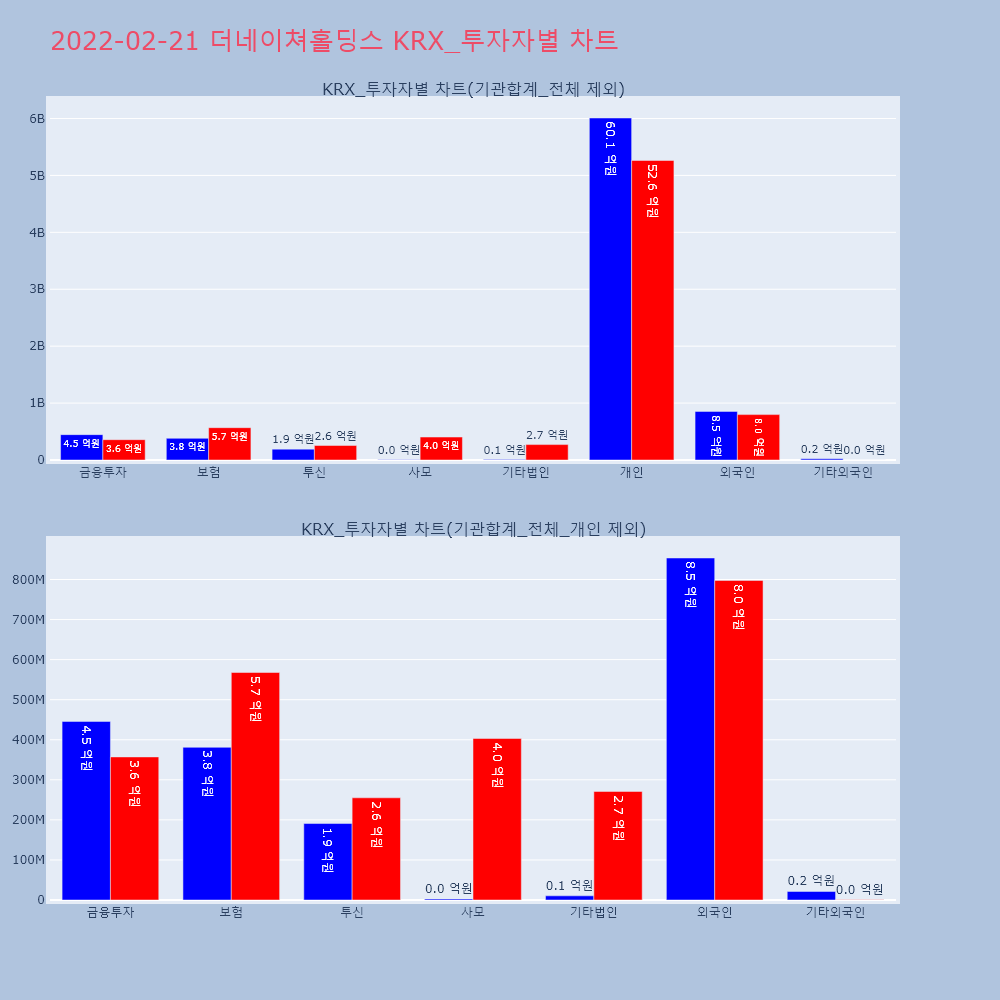 | 투자기관 | 거래량_매도 | 거래량_매수 | 거래량_순매수 | 거래대금_매도 | 거래대금_매수 | 거래대금_순매수 |