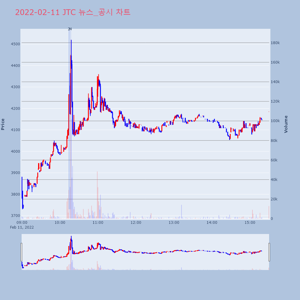 | 2022-02-11 14:01:00 | 20220211900355 | 매출액또는손익구조30%(대규모법인은15%)이상변동 |
