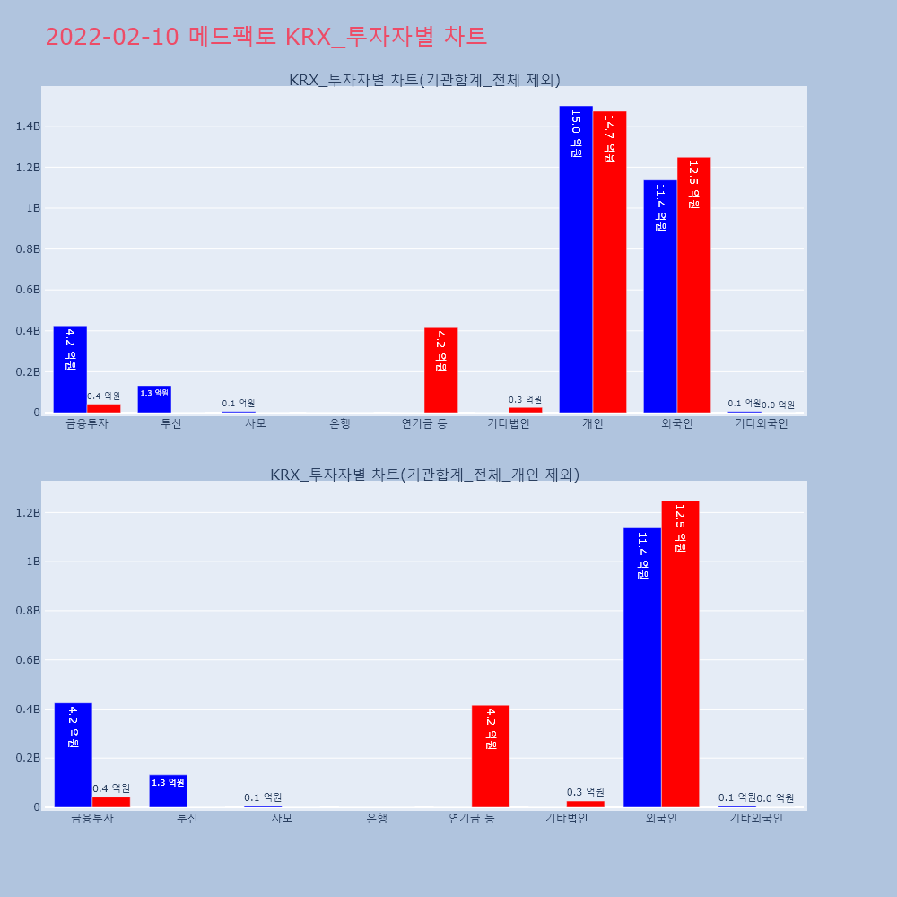 | 투자기관 | 거래량_매도 | 거래량_매수 | 거래량_순매수 | 거래대금_매도 | 거래대금_매수 | 거래대금_순매수 |