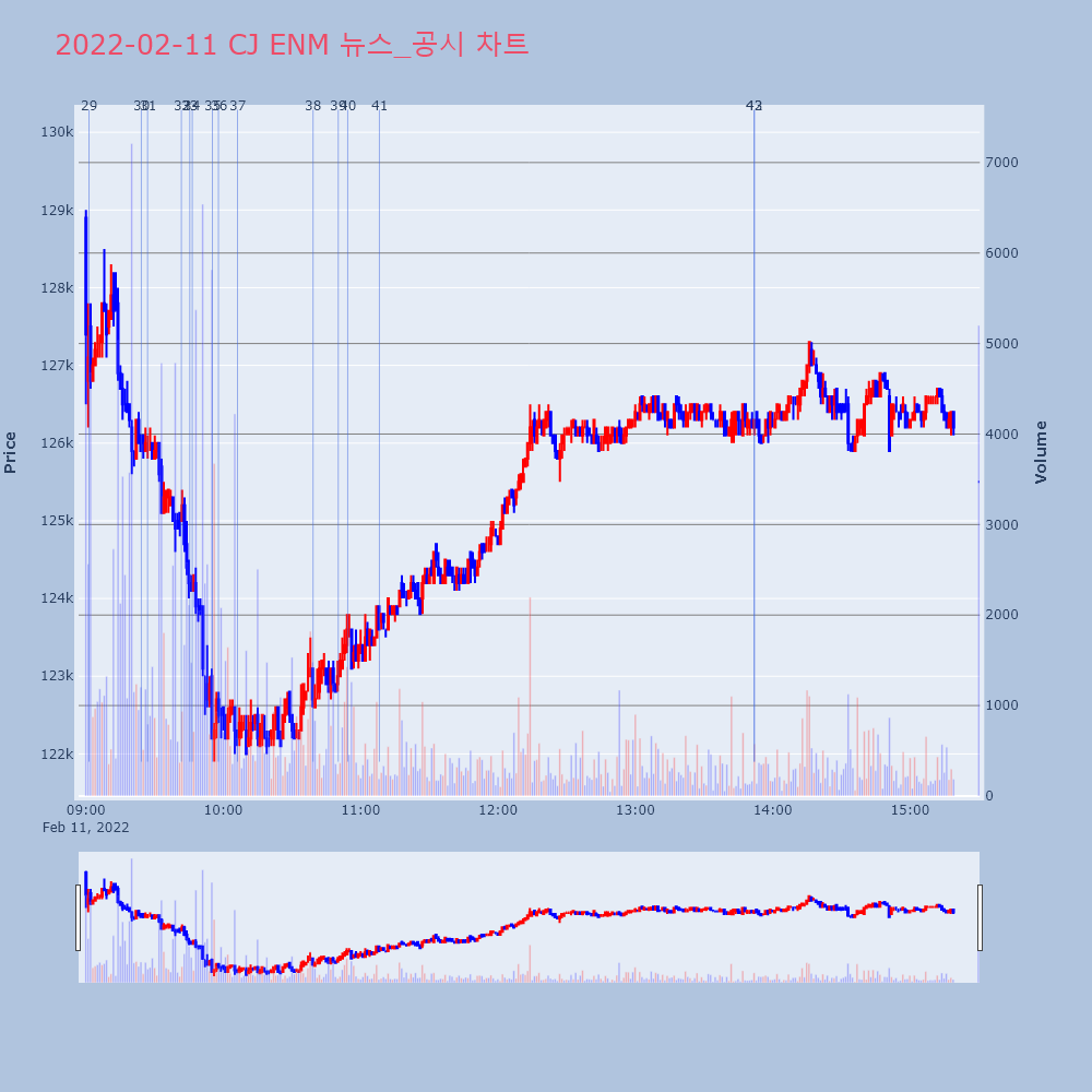 | 25 | [장중수급포착] 스튜디오드래곤, 외국인/기관 동시 순매수… 주가 +2.88% [서울=뉴스핌] 로보뉴스 = 11일 10시 15분 현재 | 뉴스핌 | 스튜디오드래곤 | 2022-02-11 10:17:03 |