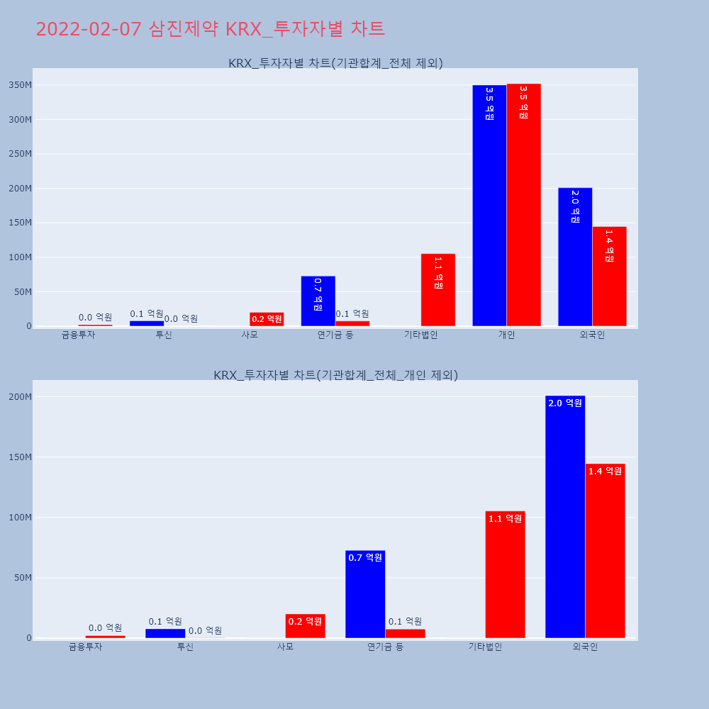 | 투자기관 | 거래량_매도 | 거래량_매수 | 거래량_순매수 | 거래대금_매도 | 거래대금_매수 | 거래대금_순매수 |
