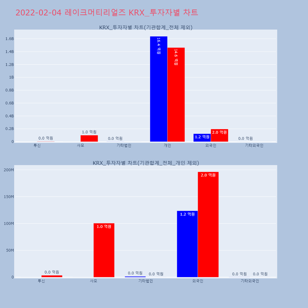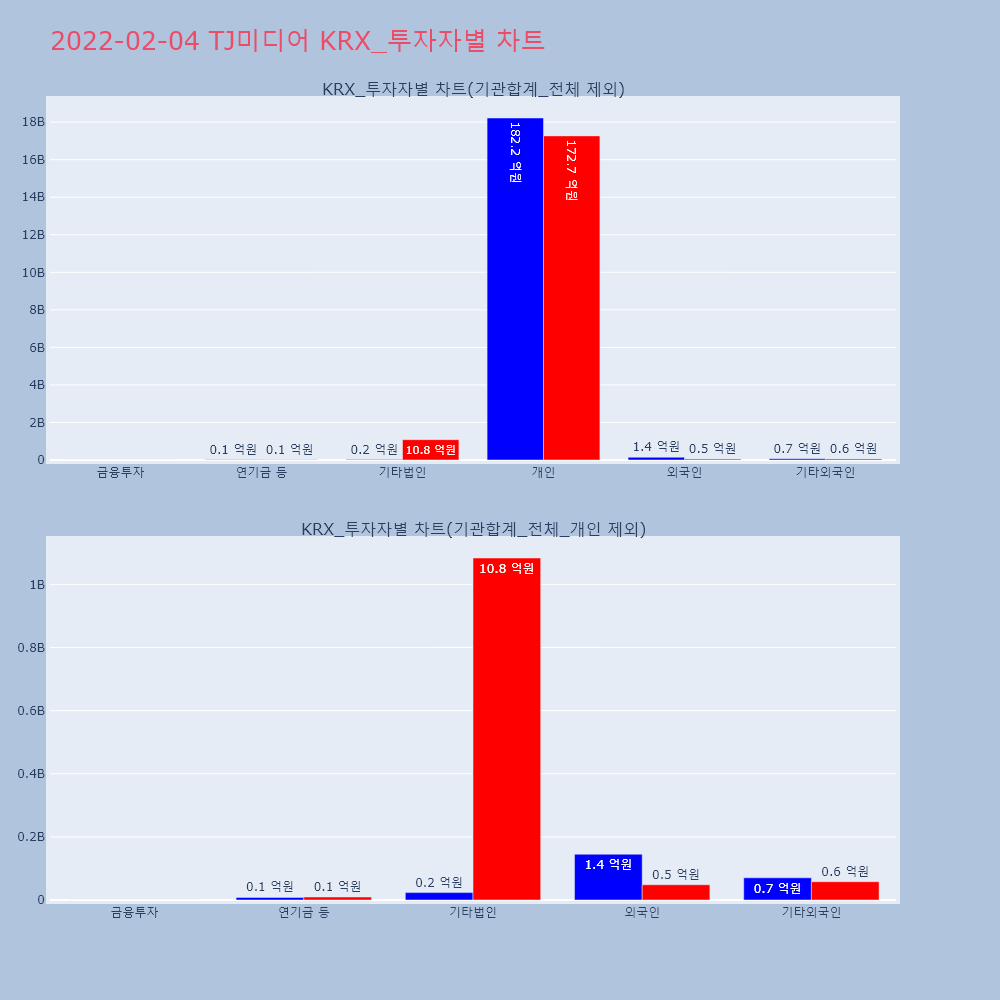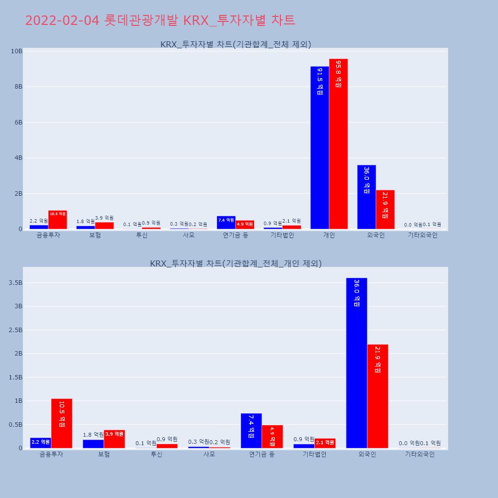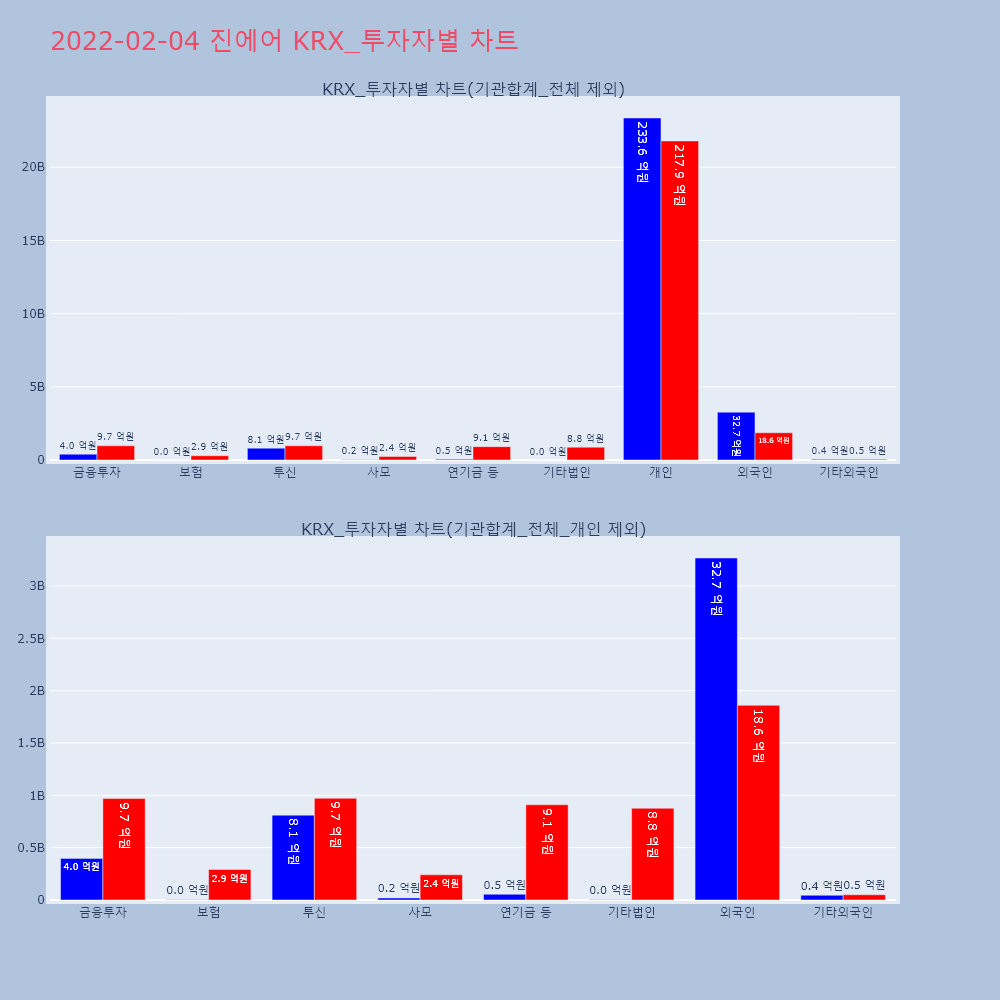| 개인 | 64,472 | 45,065 | -19,407 | 1,735,448,000 | 1,213,355,100 | -522,092,900 |