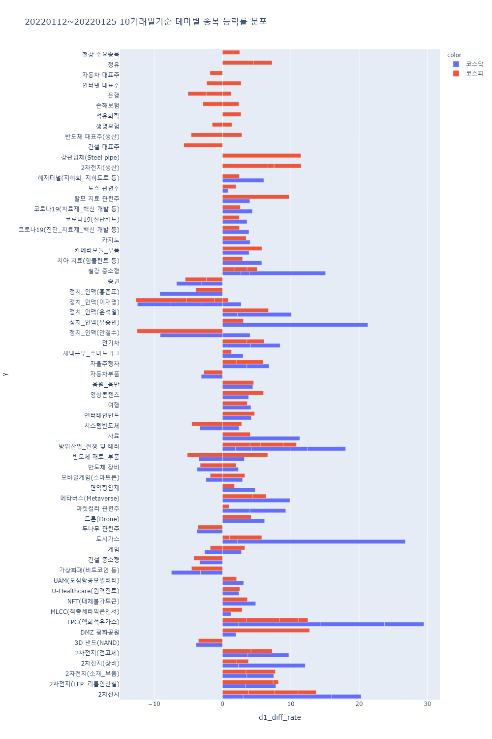 ▷국내 코로나19 확산세 지속 속 여행, 항공/저가 항공사, 면세점, 카지노 등 리오프닝 관련 테마 하락.