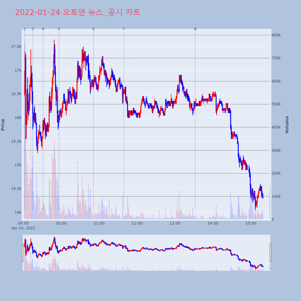 | 8 | [특징주] 새해 첫 IPO 오토앤, 상장 후 3거래일 연속 강세 제목 : [특징주] 새해 첫 IPO 오토앤, 상장 후 | 인포스탁 | 오토앤 | 2022-01-24 13:32:04 |