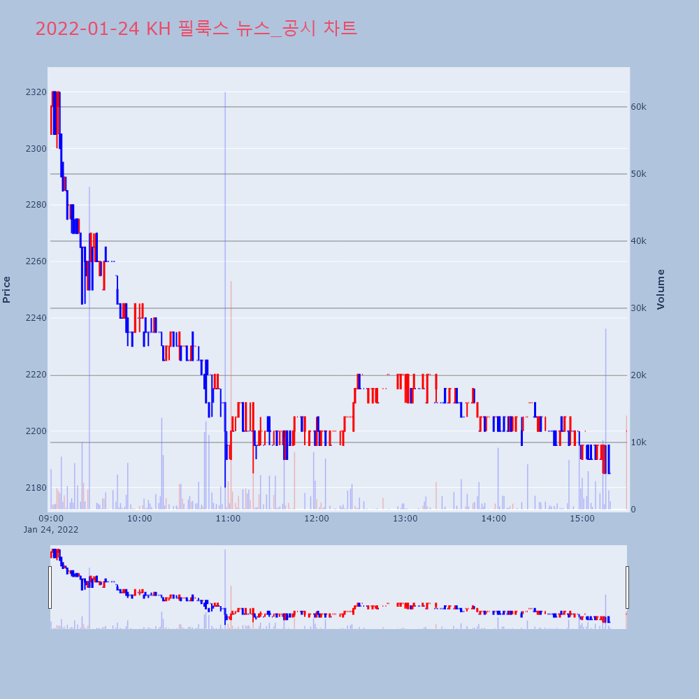 | 2022-01-24 16:49:00 | 20220124800546 | 매출액또는손익구조30%(대규모법인은15%)이상변경 |