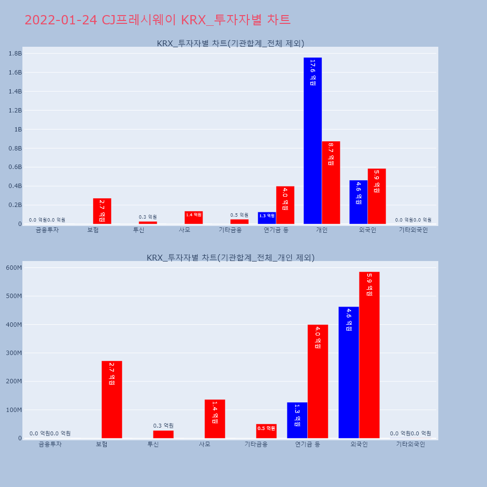 | 투자기관 | 거래량_매도 | 거래량_매수 | 거래량_순매수 | 거래대금_매도 | 거래대금_매수 | 거래대금_순매수 |