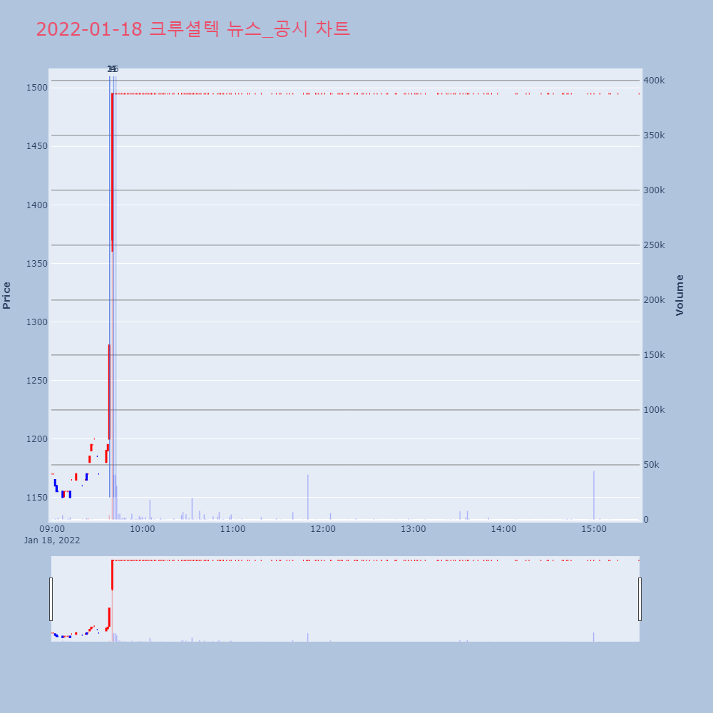 | 4 | 크루셜텍, +30.00% 상한가크루셜텍(114120)이 상한가를 기록했다. 전일 대비 | 조선경제 | 크루셜텍 | 2022-01-18 09:40:47 |