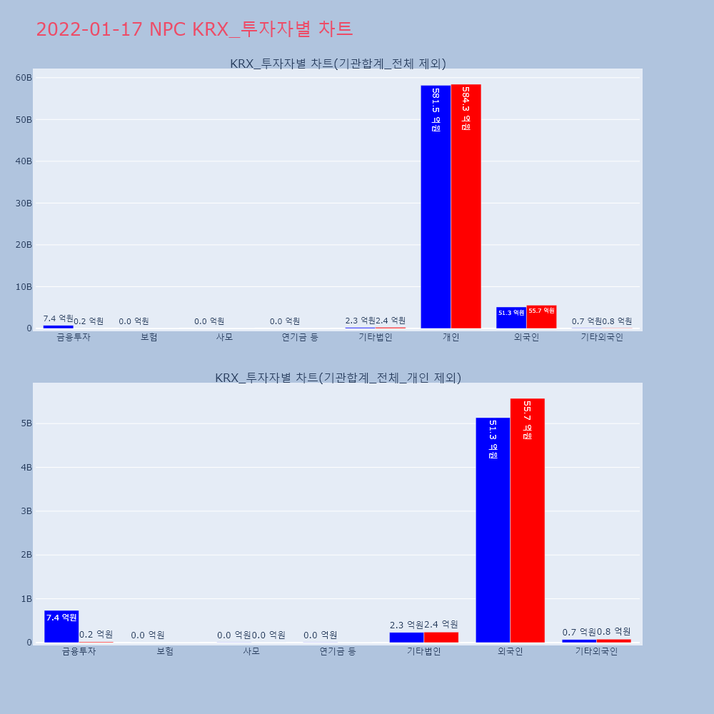 | 투자기관 | 거래량_매도 | 거래량_매수 | 거래량_순매수 | 거래대금_매도 | 거래대금_매수 | 거래대금_순매수 |