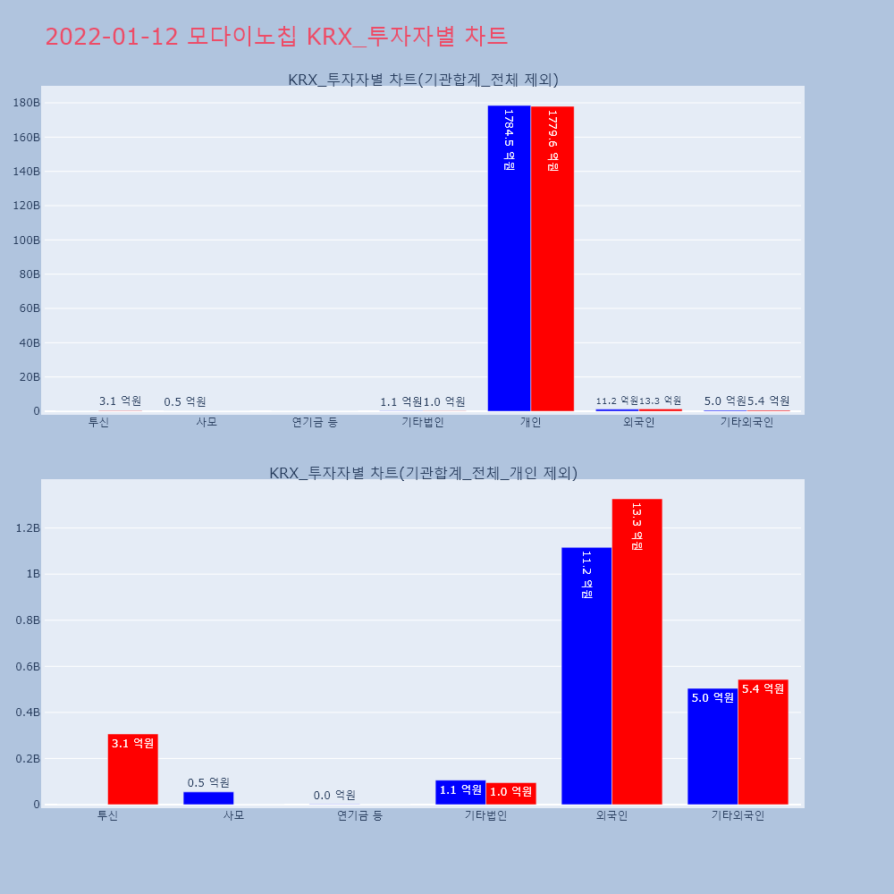| 투자기관 | 거래량_매도 | 거래량_매수 | 거래량_순매수 | 거래대금_매도 | 거래대금_매수 | 거래대금_순매수 |