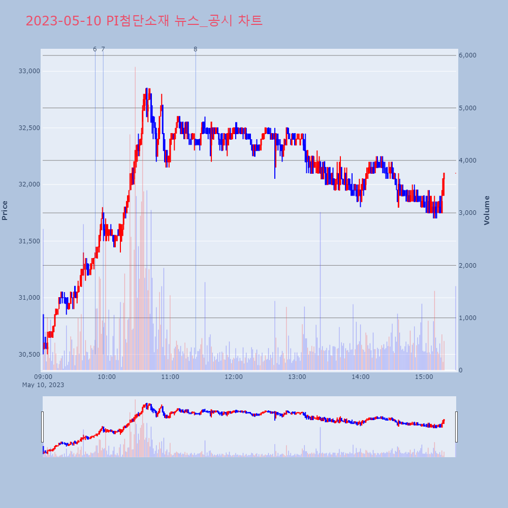 | 6 | [장중수급포착] 애경케미칼, 외국인/기관 동시 순매수… 주가 +17.05% [서울=뉴스핌] 로보뉴스 = 10일 10시 15분 현재 | 뉴스핌 | 애경케미칼 | 2023-05-10 10:23:10 |