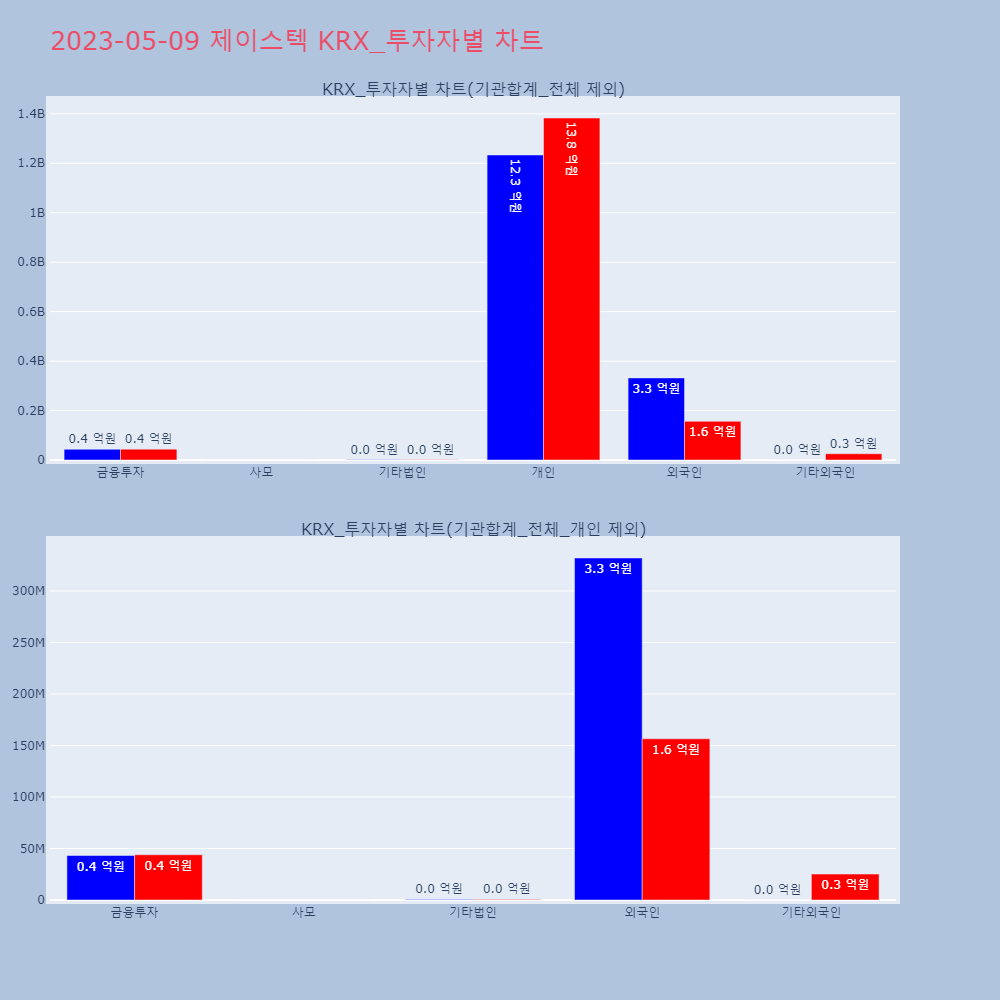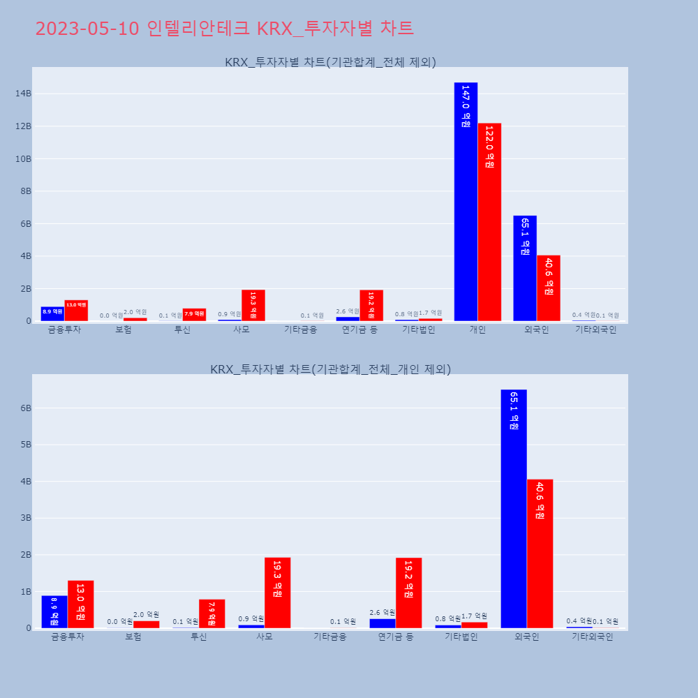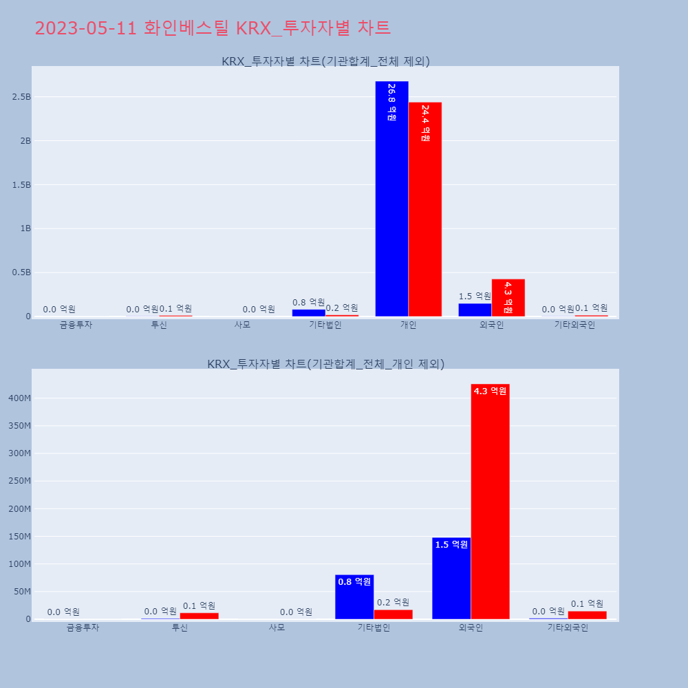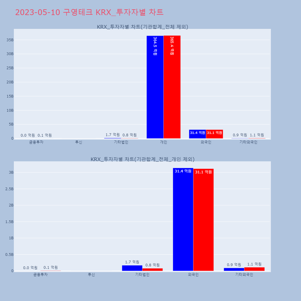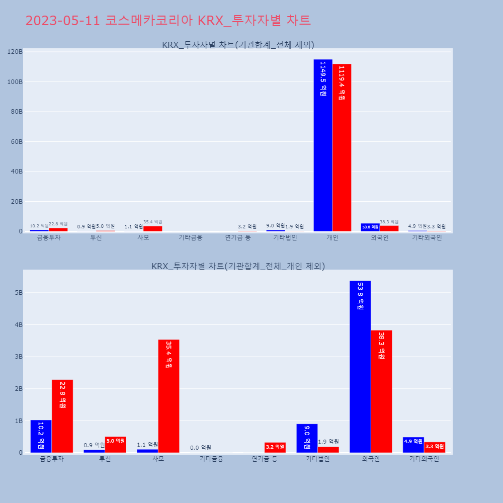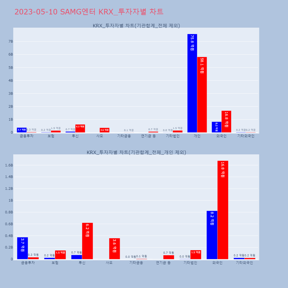 | 투자기관 | 매도량/금액(백) | 매수량/금액(백) | 순매수량/금액(백) |