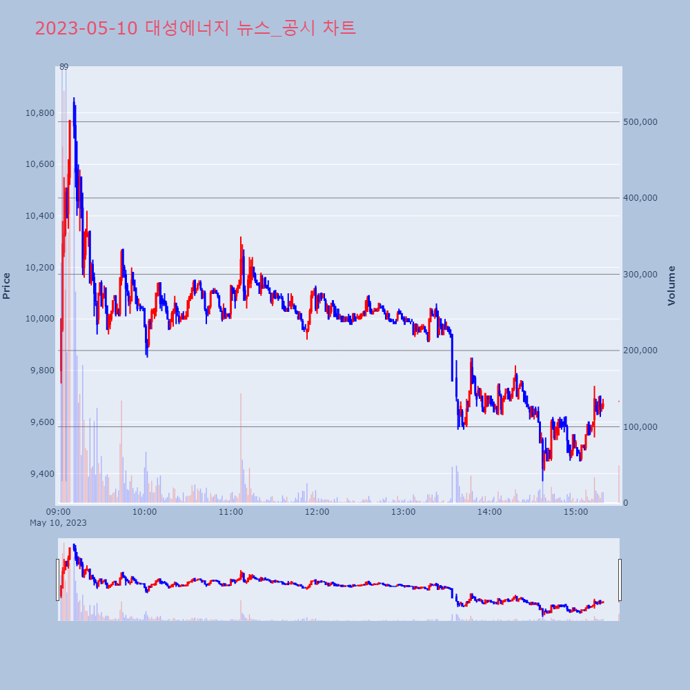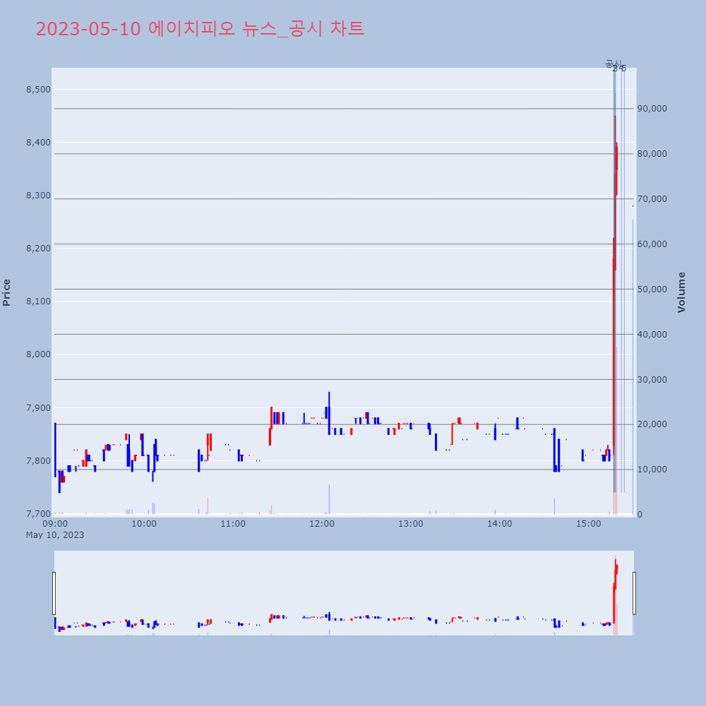 | 3 | 애경케미칼, +9.96% VI 발동애경케미칼이 VI가 발동했다. 전일 대비 9.96% 상 | 조선경제 | 애경케미칼 | 2023-05-10 09:15:20 |