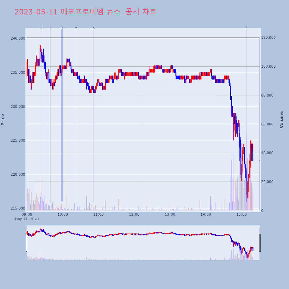 | 4 | 에코프로, -7.63% VI 발동에코프로가 VI가 발동했다. 전일 대비 7.63% 하락 | 조선경제 | 에코프로 | 2023-05-11 15:09:01 |