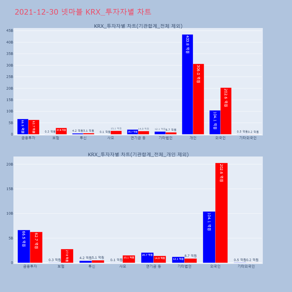| 투자기관 | 거래량_매도 | 거래량_매수 | 거래량_순매수 | 거래대금_매도 | 거래대금_매수 | 거래대금_순매수 |