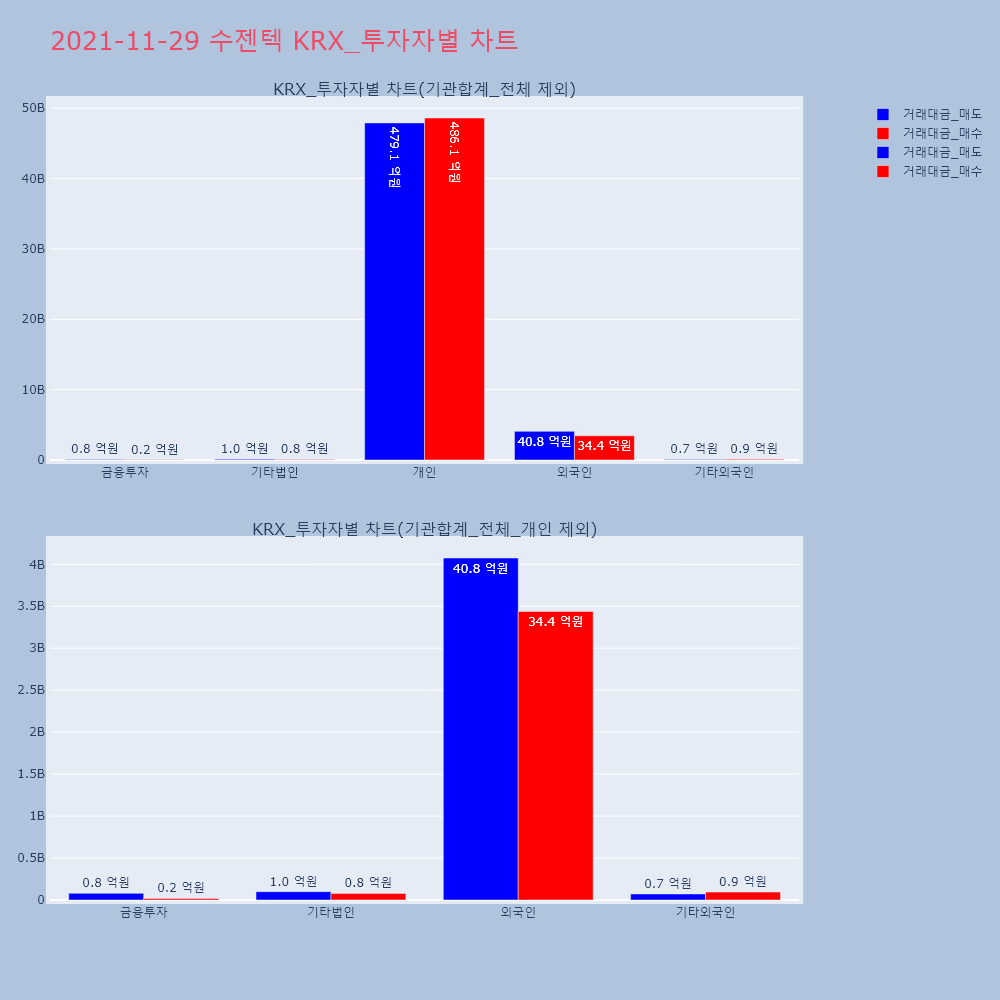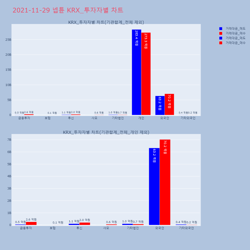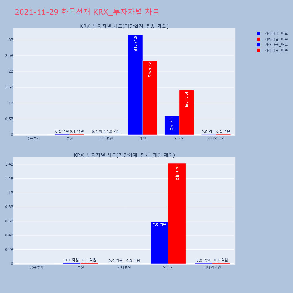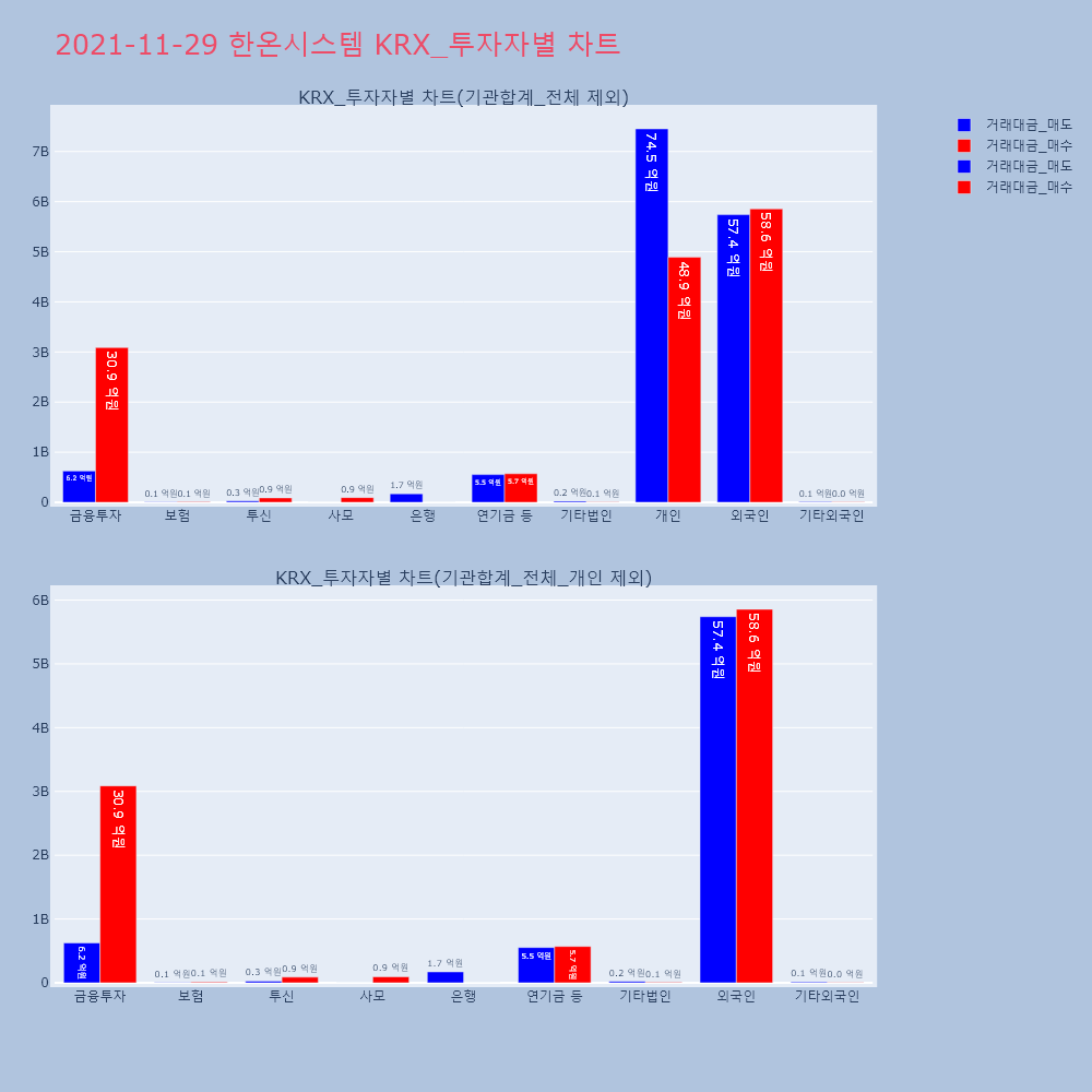 | 투자기관 | 거래량_매도 | 거래량_매수 | 거래량_순매수 | 거래대금_매도 | 거래대금_매수 | 거래대금_순매수 |