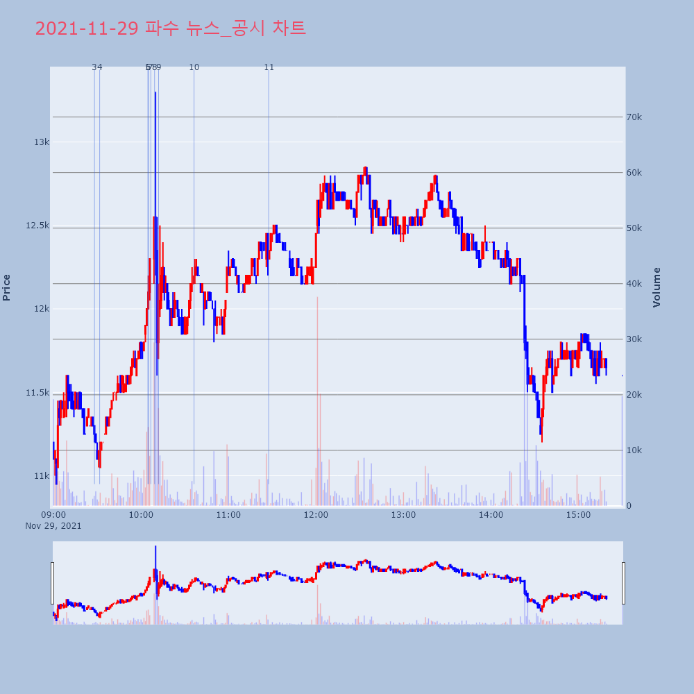 | 2021-11-29 17:09:00 | 20211129900560 | 조회공시요구(현저한시황변동) |
