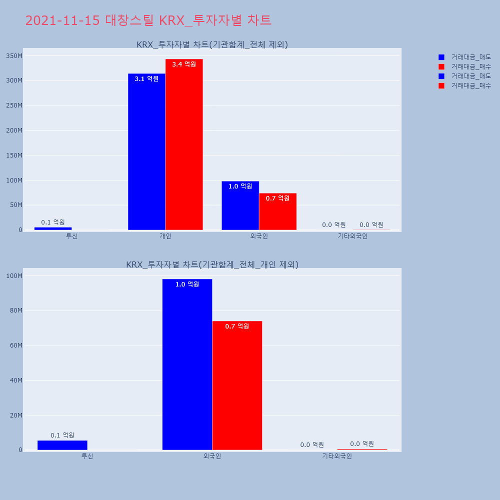 | 투자기관 | 거래량_매도 | 거래량_매수 | 거래량_순매수 | 거래대금_매도 | 거래대금_매수 | 거래대금_순매수 |