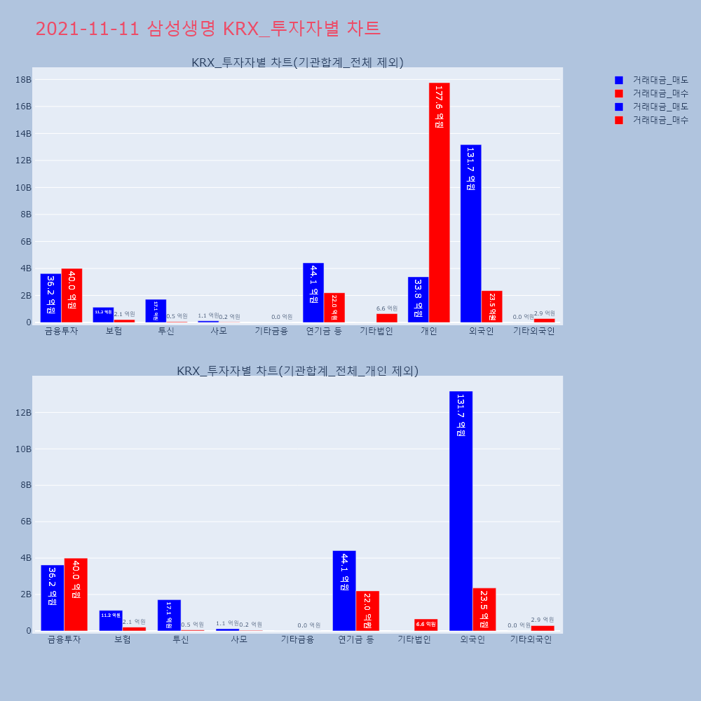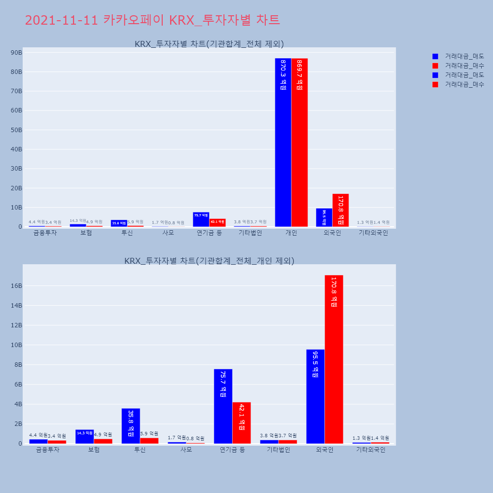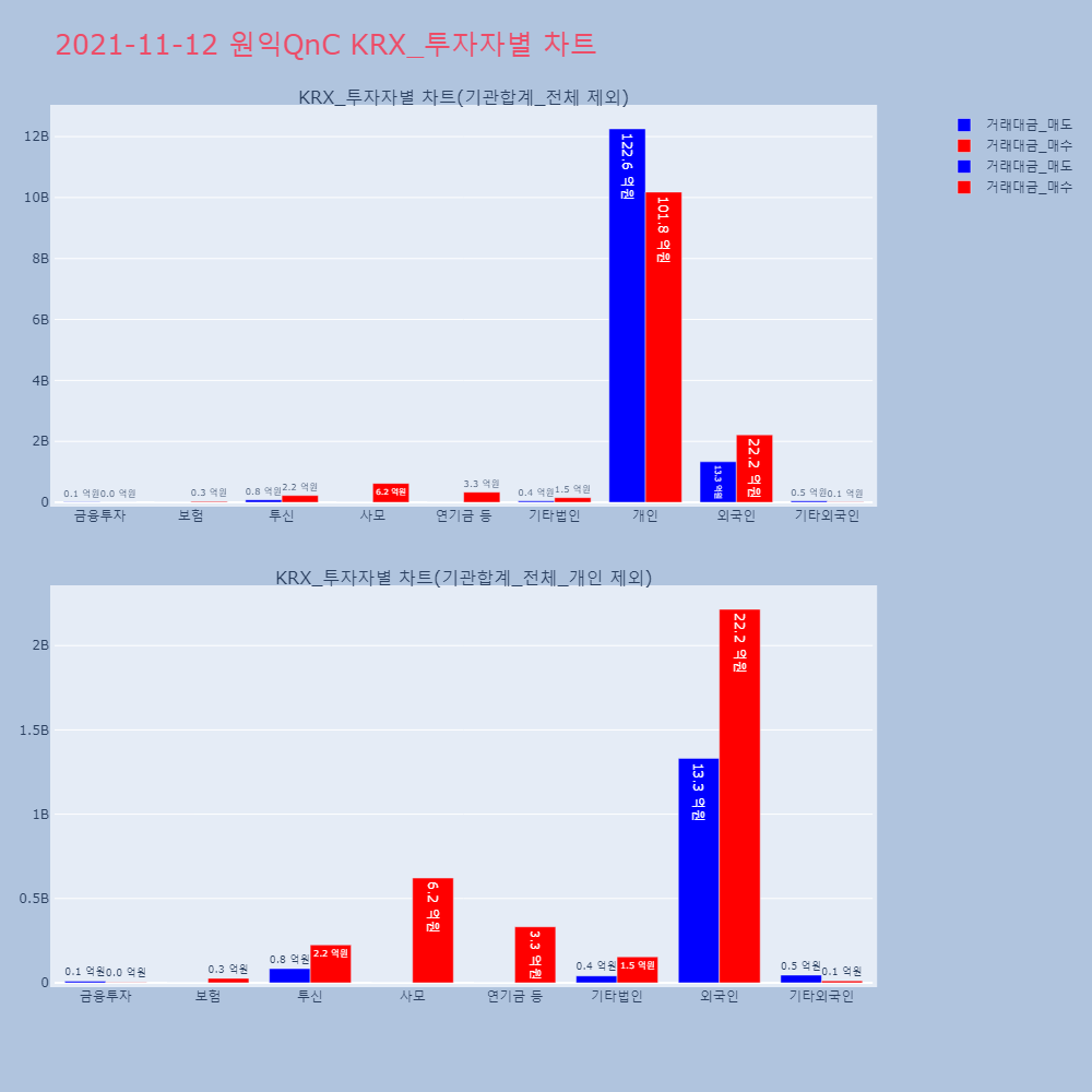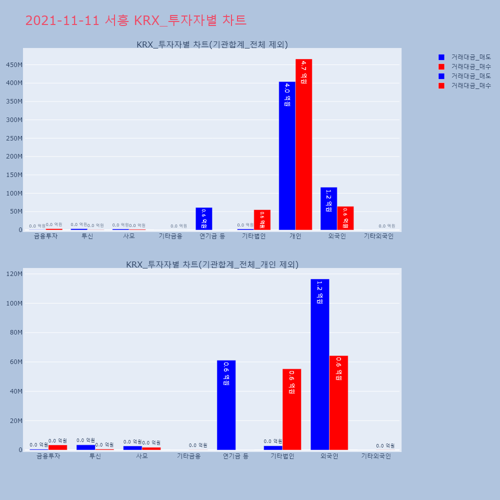 | 투자기관 | 거래량_매도 | 거래량_매수 | 거래량_순매수 | 거래대금_매도 | 거래대금_매수 | 거래대금_순매수 |