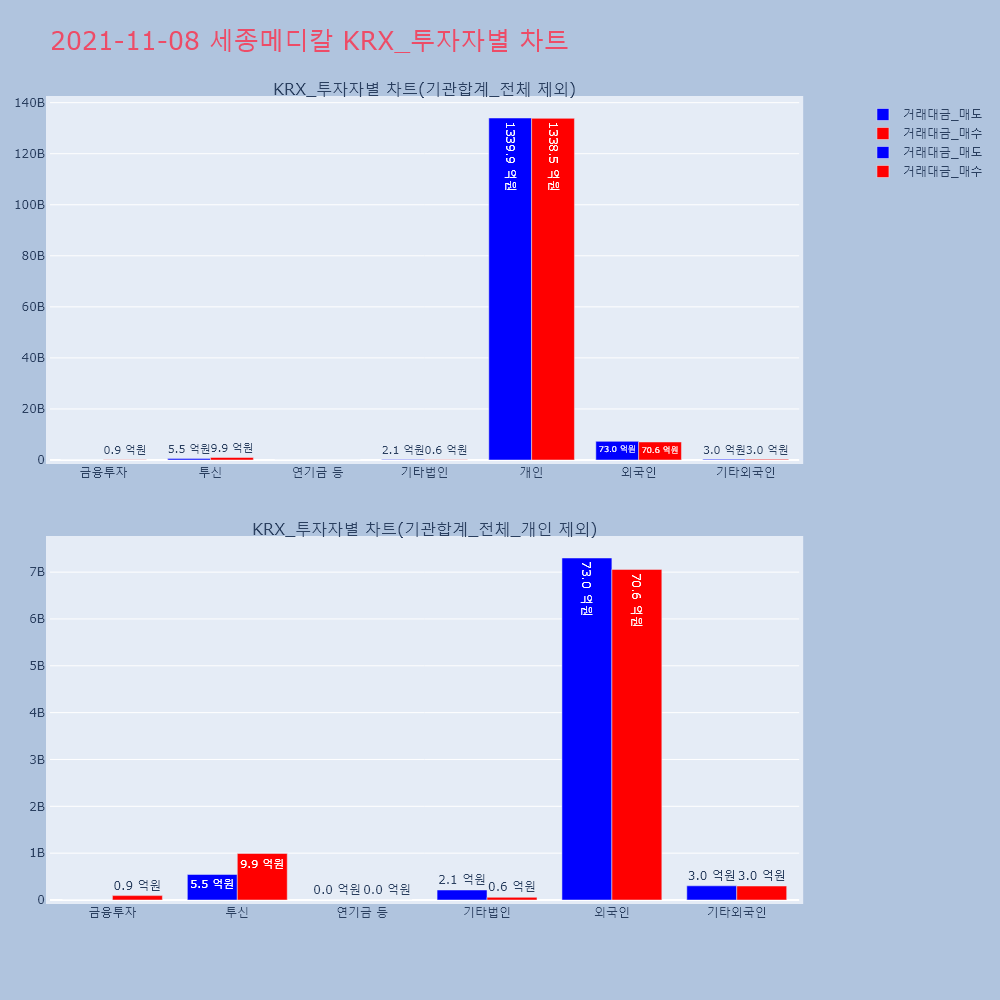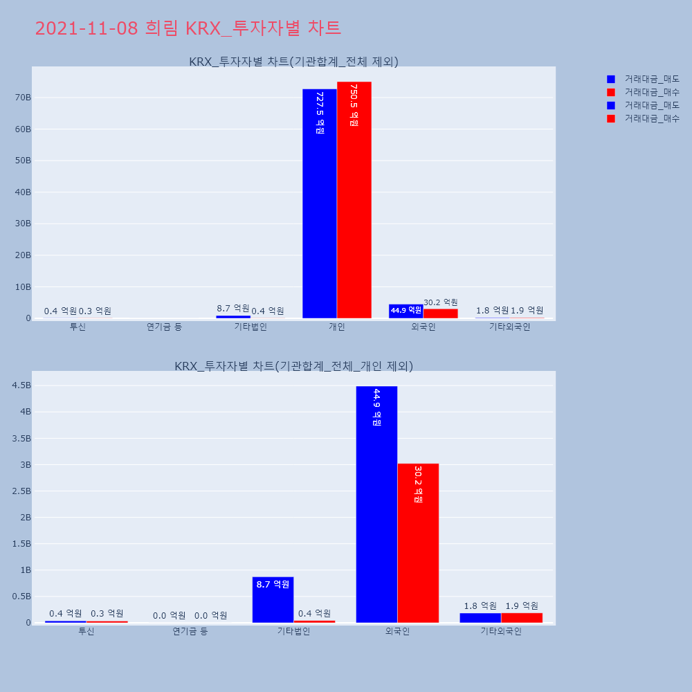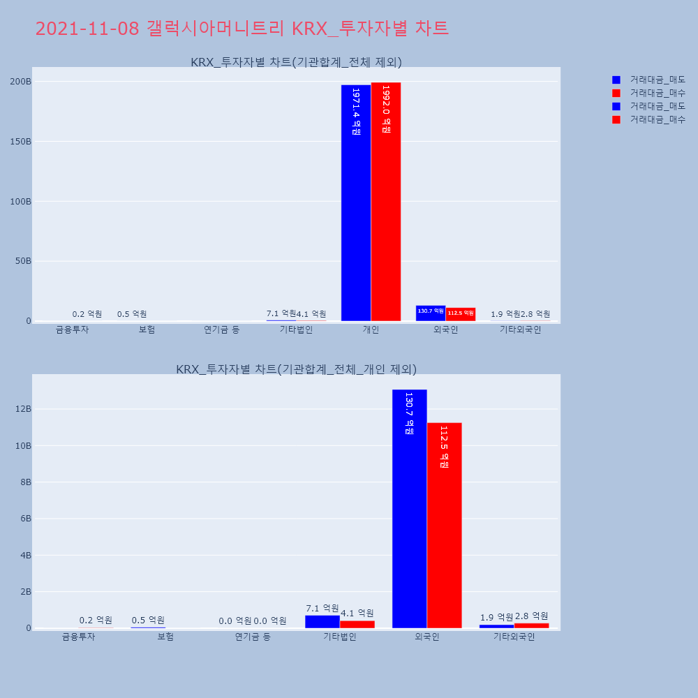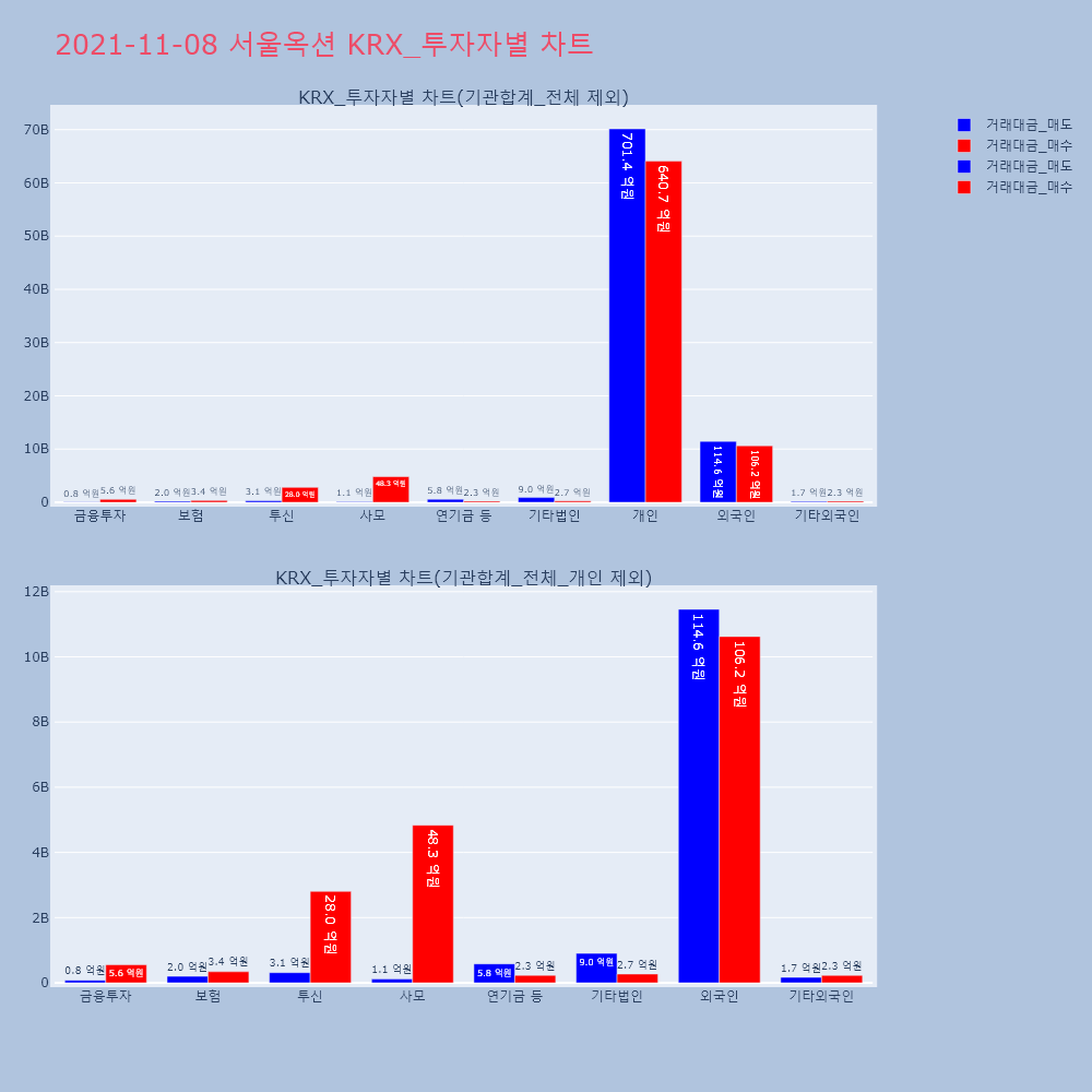 | 투자기관 | 거래량_매도 | 거래량_매수 | 거래량_순매수 | 거래대금_매도 | 거래대금_매수 | 거래대금_순매수 |
