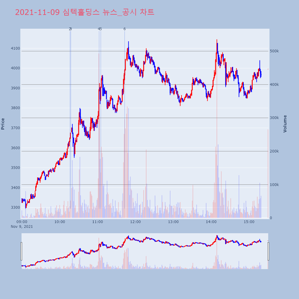 | 3 | 심텍홀딩스, +9.54% VI 발동심텍홀딩스(036710)가 VI가 발동했다. 전일 대비 | 조선경제 | 심텍홀딩스 | 2021-11-09 10:17:34 |