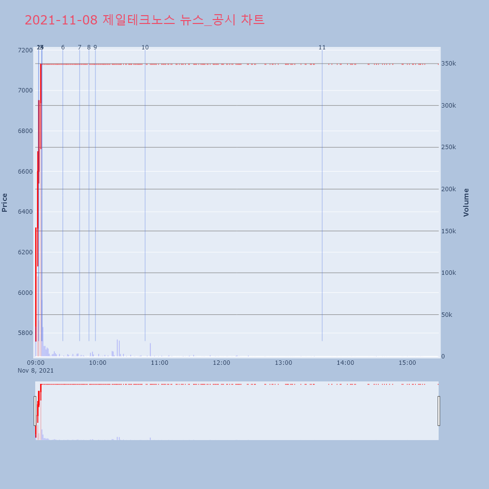| 6 | [특징주]윤석열 후보확정에 제일테크노스 상한가 [아시아경제 박소연 기자] 제일테크노스가 장초반 상한가 | 아시아경제 | 제일테크노스 | 2021-11-08 09:26:17 |