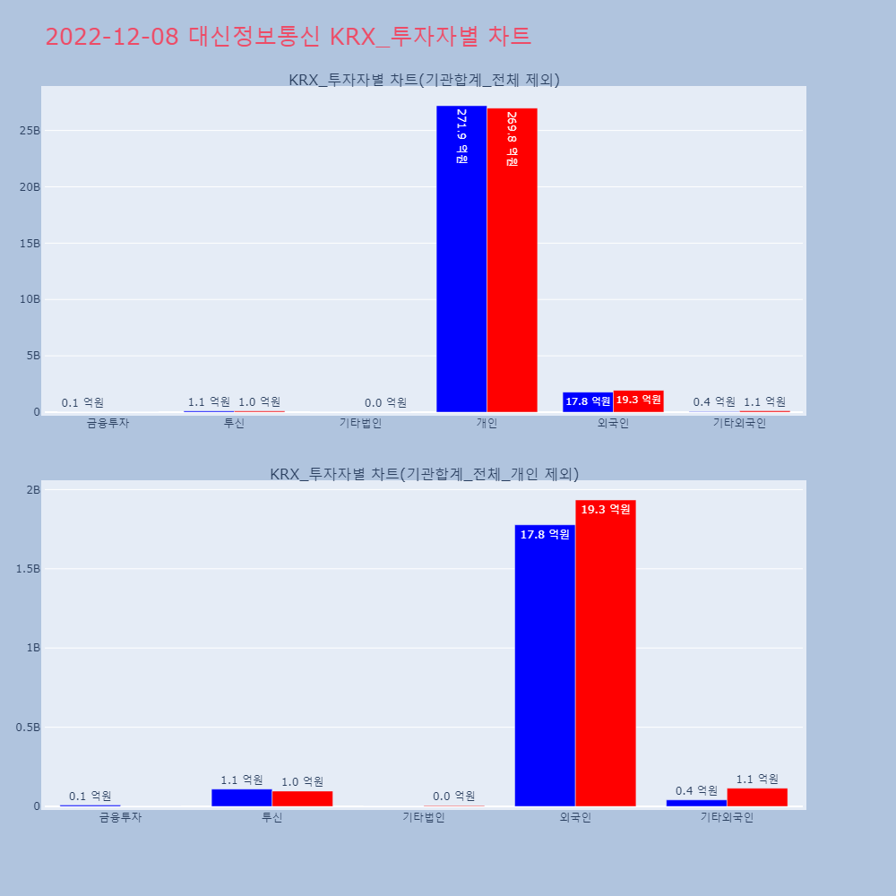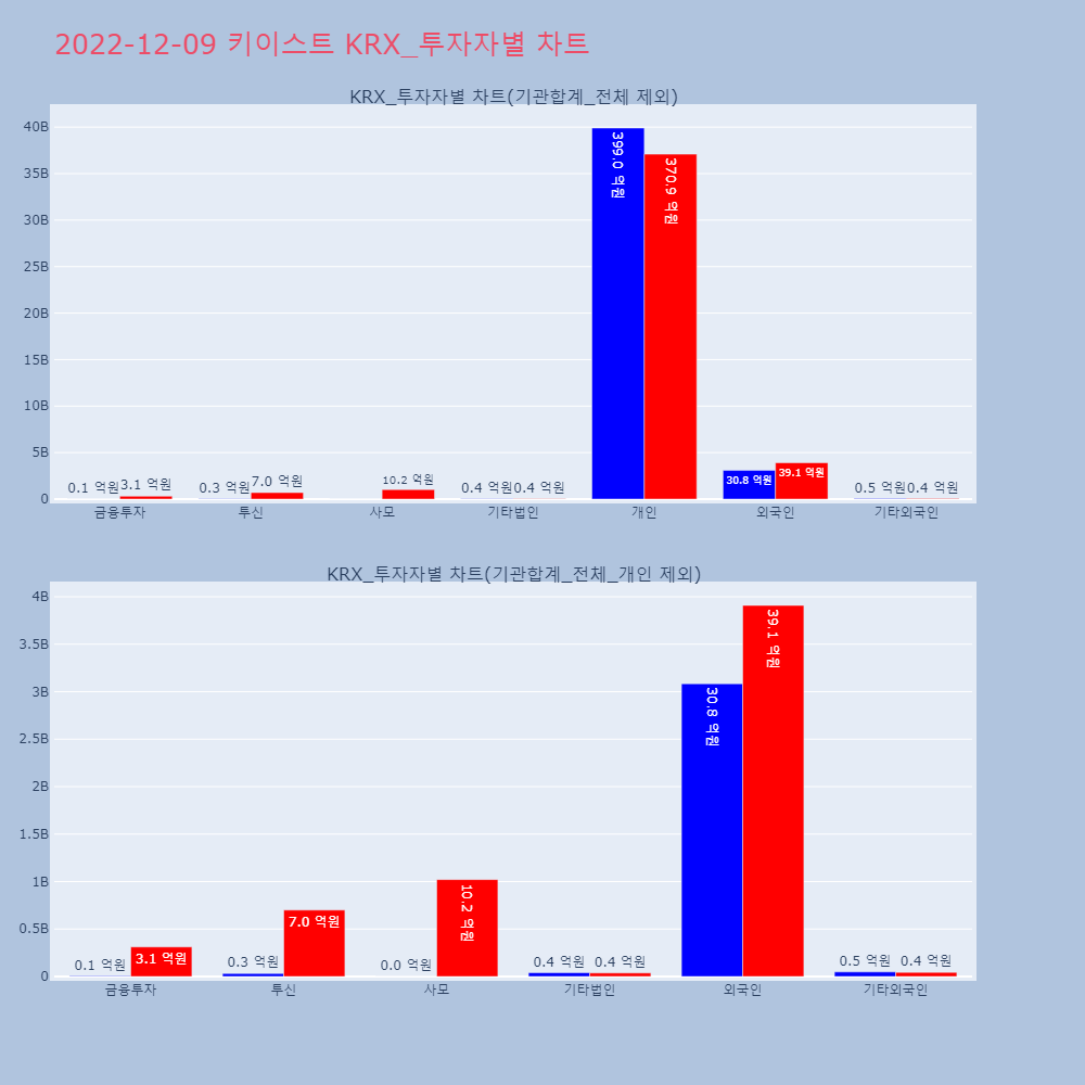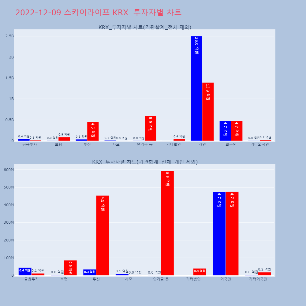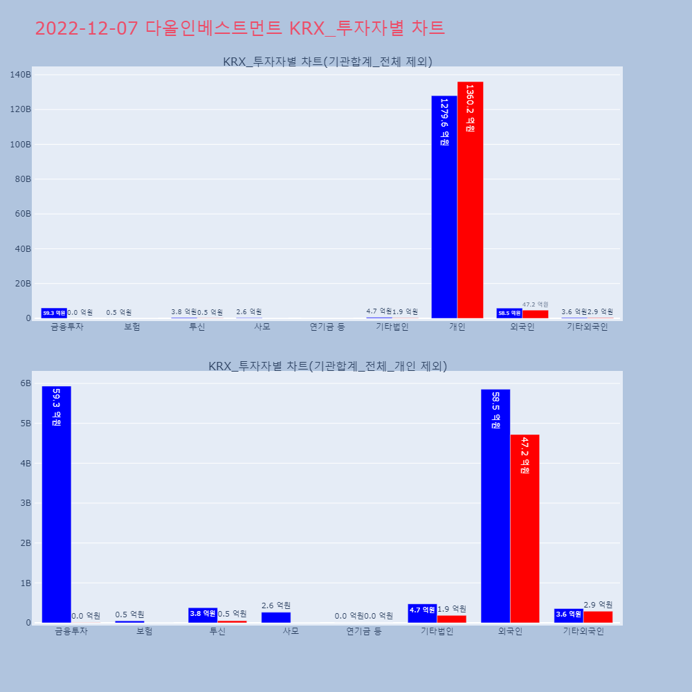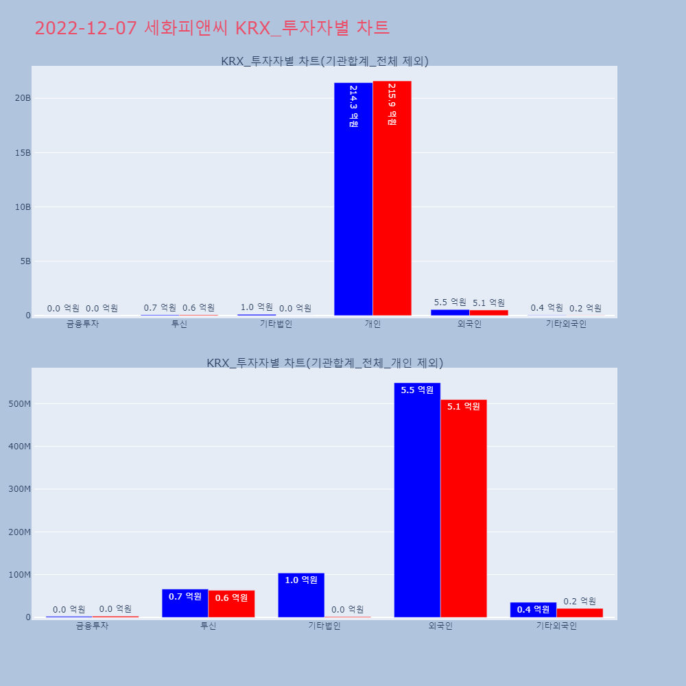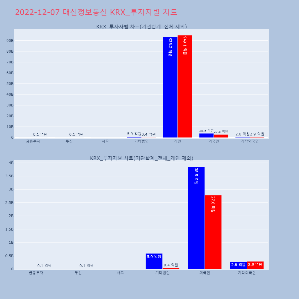 | 투자기관 | 거래량_매도 | 거래량_매수 | 거래량_순매수 | 거래대금_매도 | 거래대금_매수 | 거래대금_순매수 |