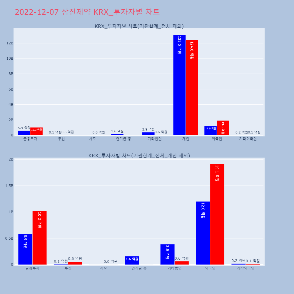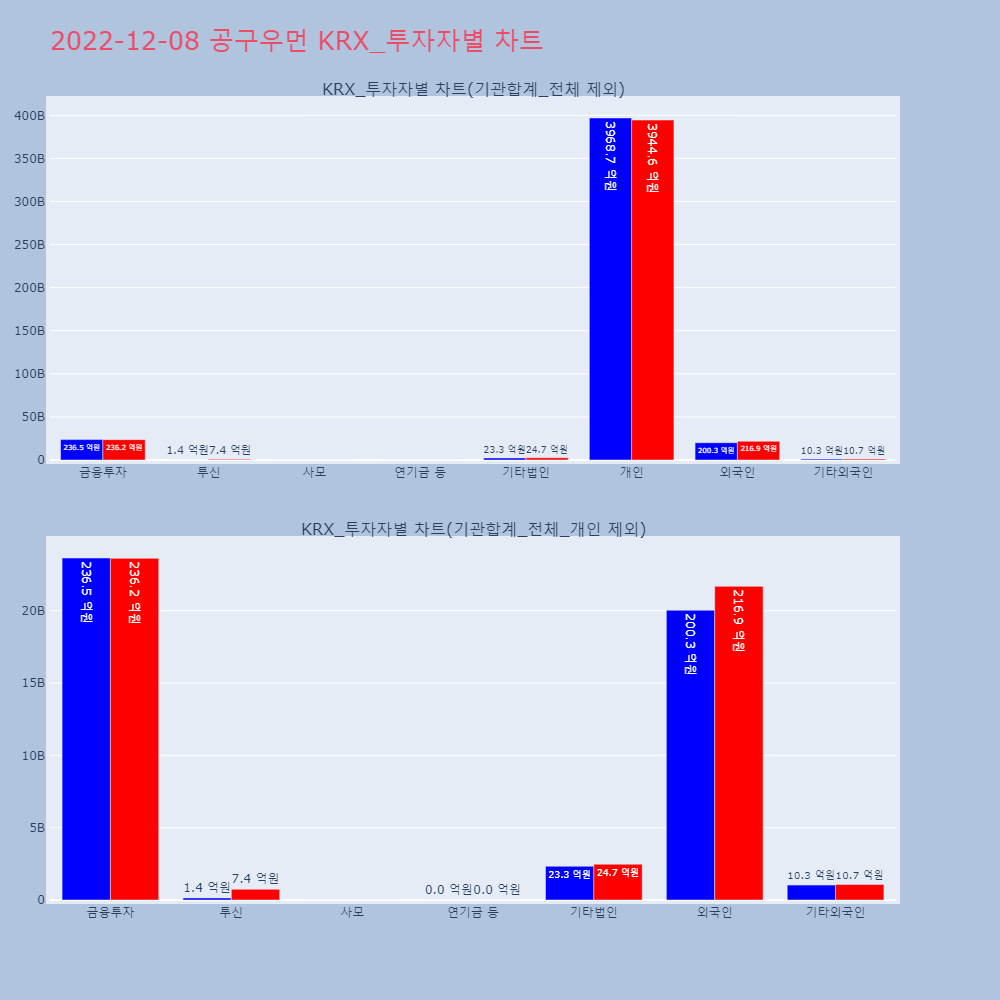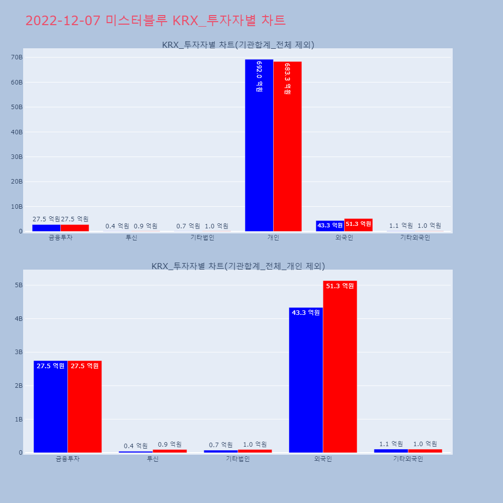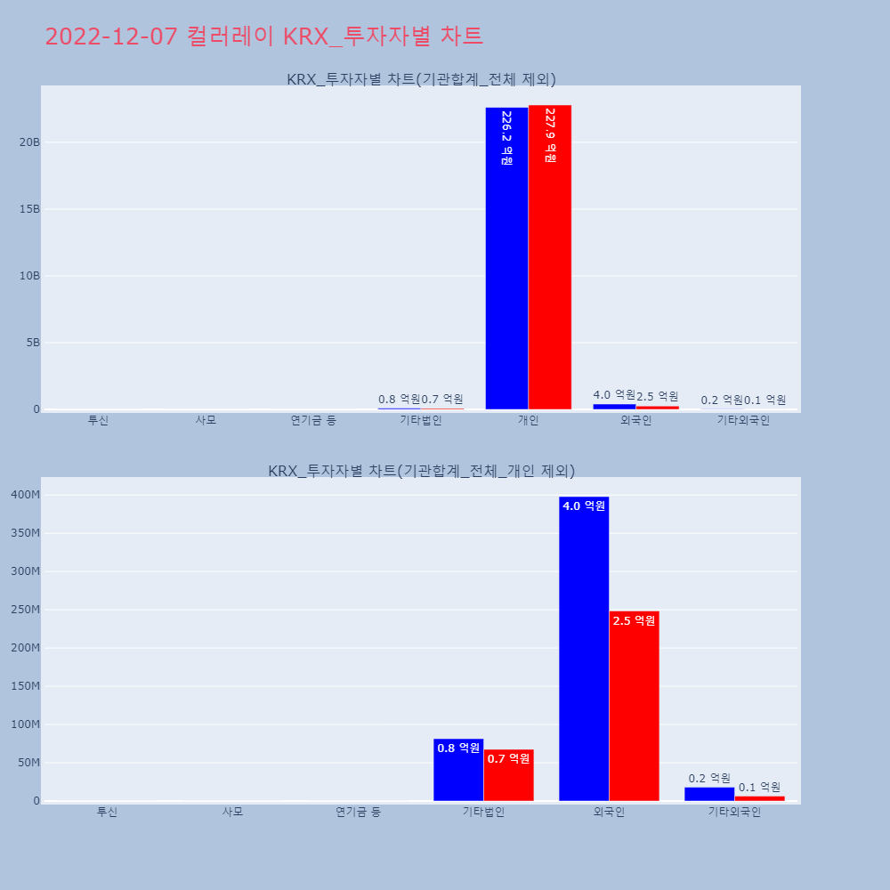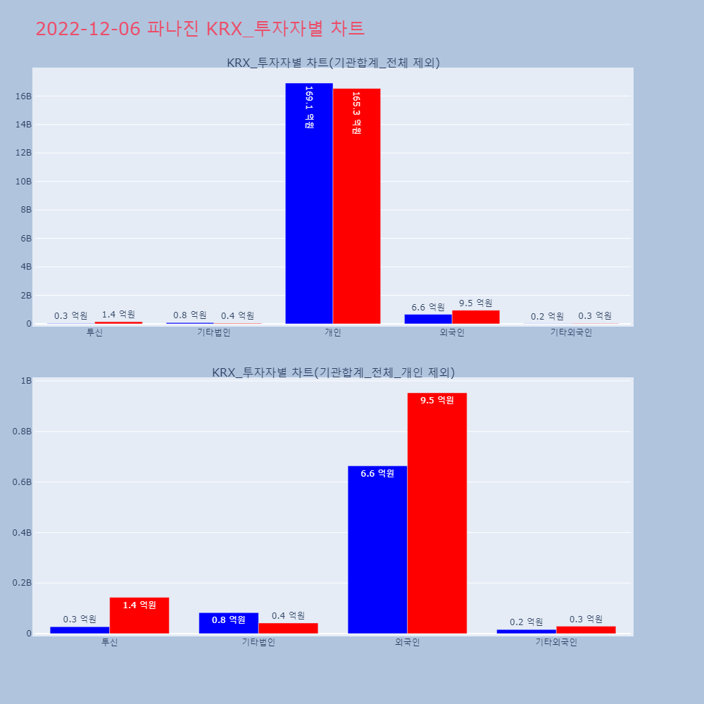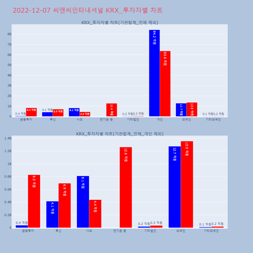 | 투자기관 | 거래량_매도 | 거래량_매수 | 거래량_순매수 | 거래대금_매도 | 거래대금_매수 | 거래대금_순매수 |