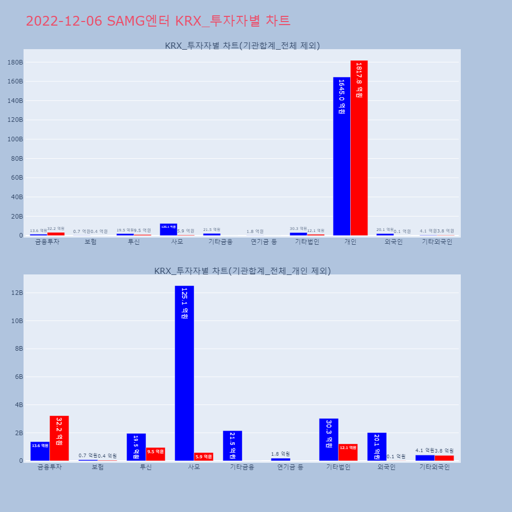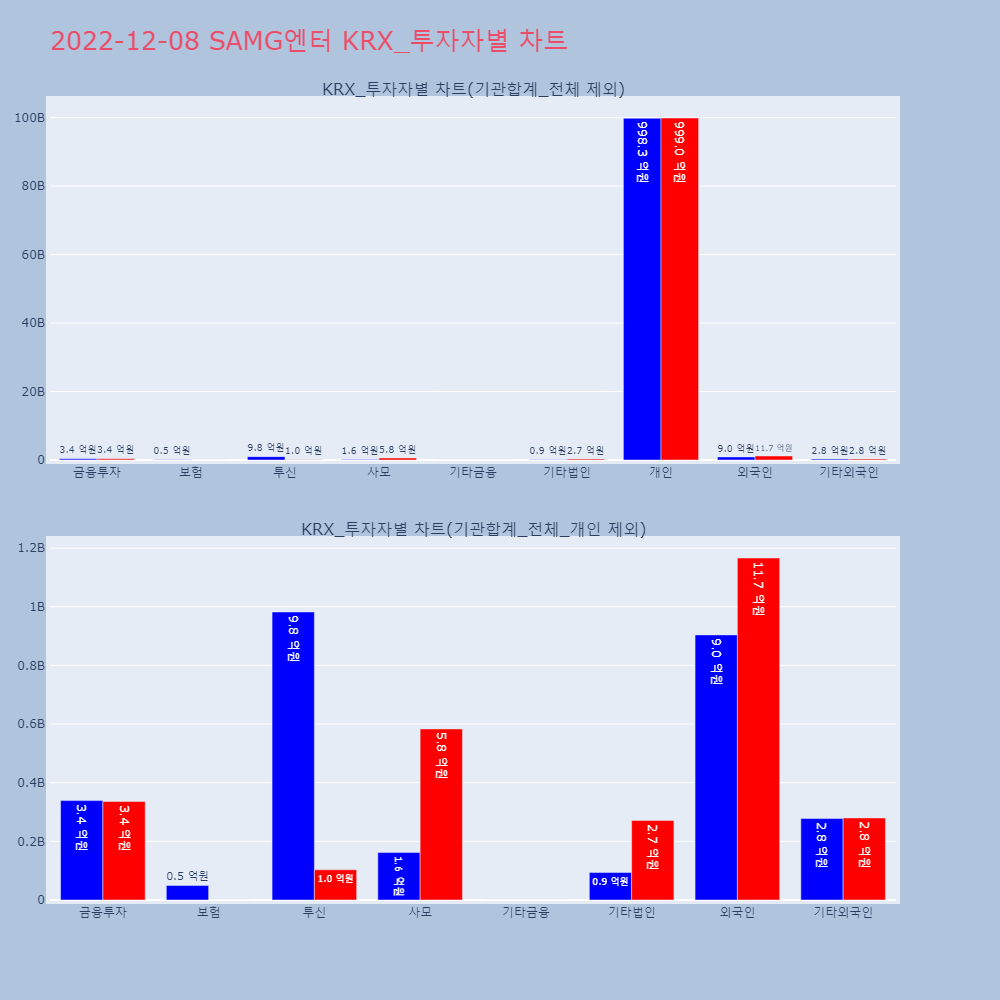| 개인 | 279,004 | 155,573 | -123,431 | 2,501,178,650 | 1,390,751,150 | -1,110,427,500 |