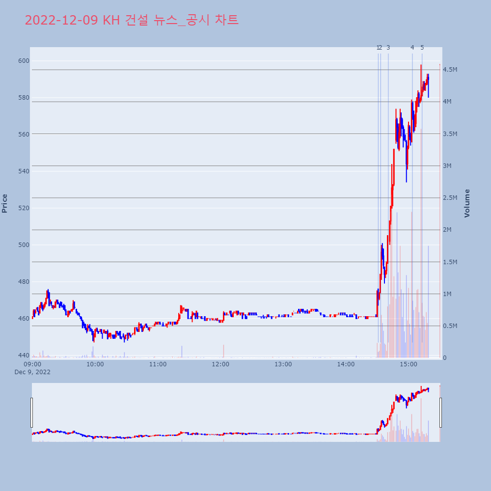 | 4 | [강세 토픽] 우크라 재건 테마, 대모 +10.49%, 현대에버다임 +6.46%[우크라 재건] 테마가 강세다. 전일 대비 2.34% | 조선경제 | 대모 | 2022-12-09 14:34:28 |