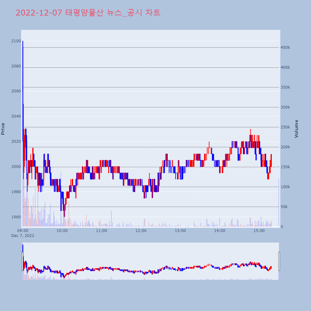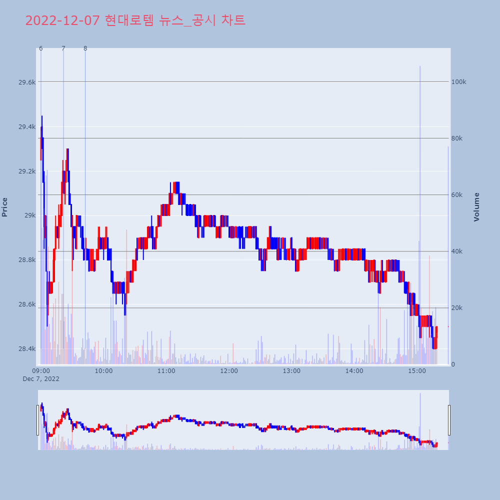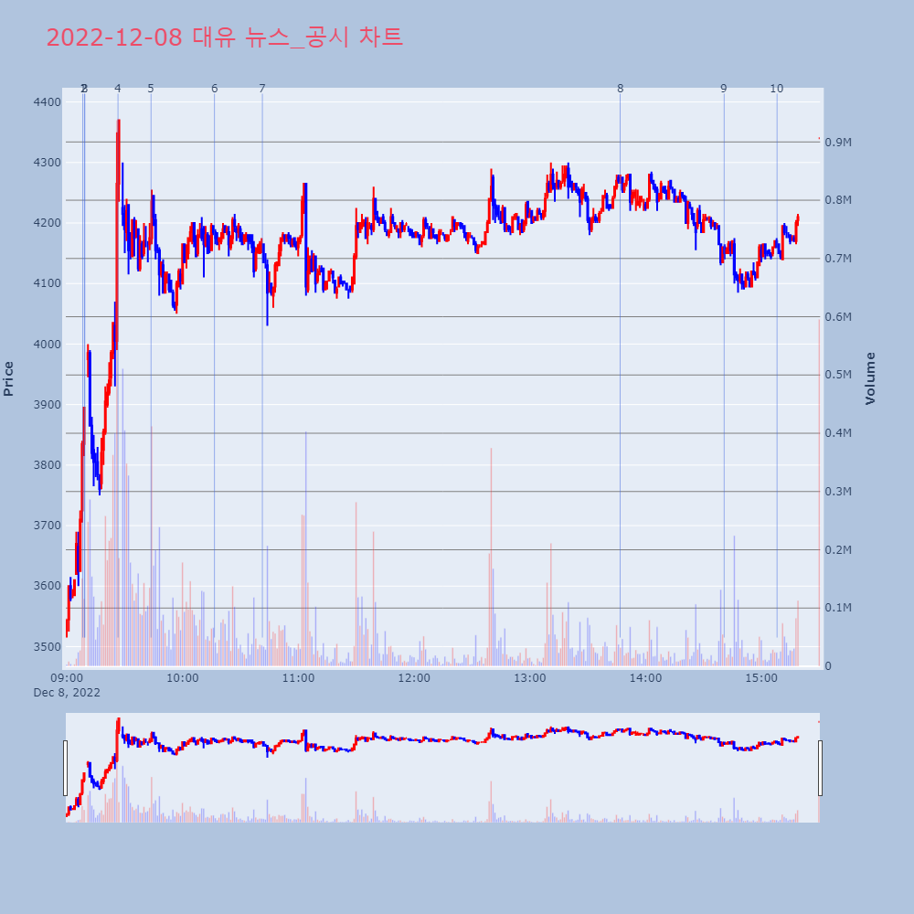 | 3 | 대모, +10.49% VI 발동대모가 VI가 발동했다. 전일 대비 10.49% 상승한 | 조선경제 | 대모 | 2022-12-09 14:33:35 |