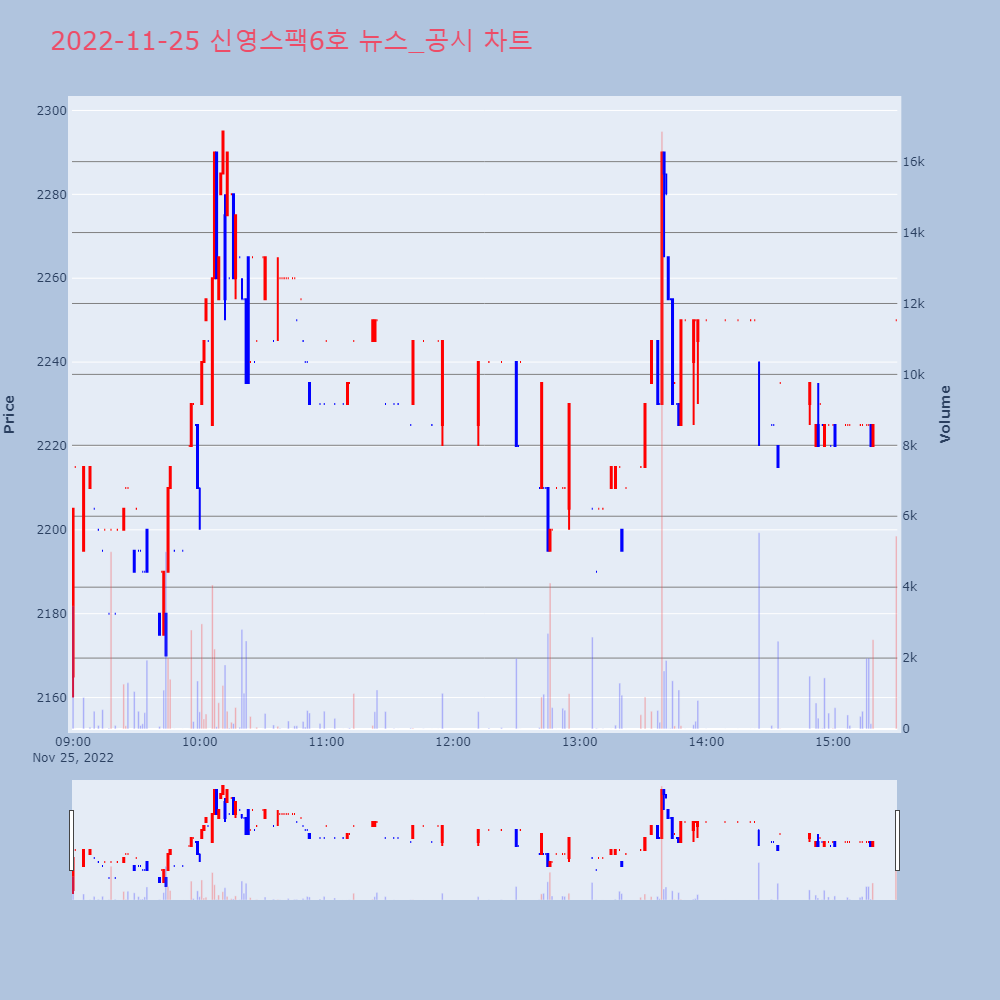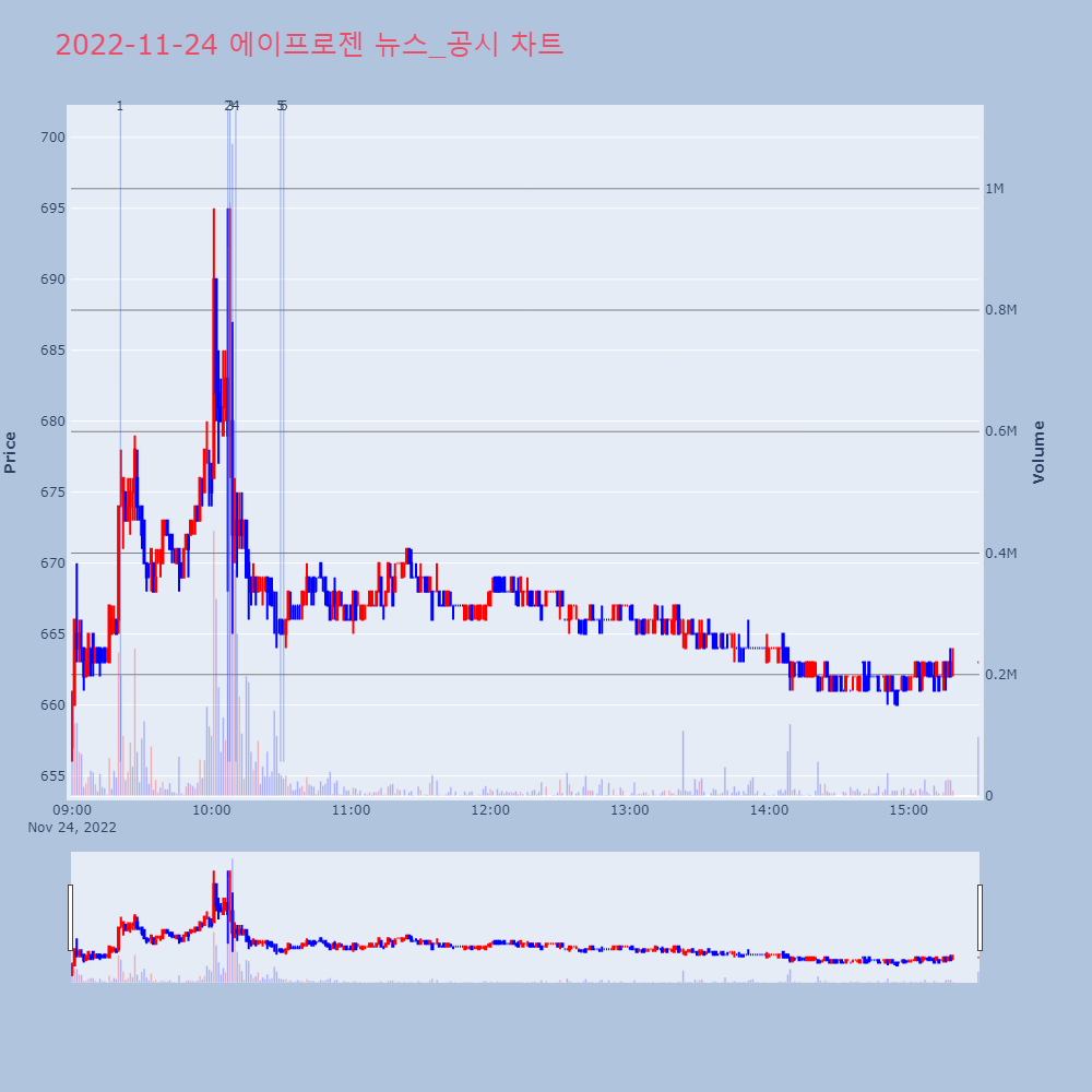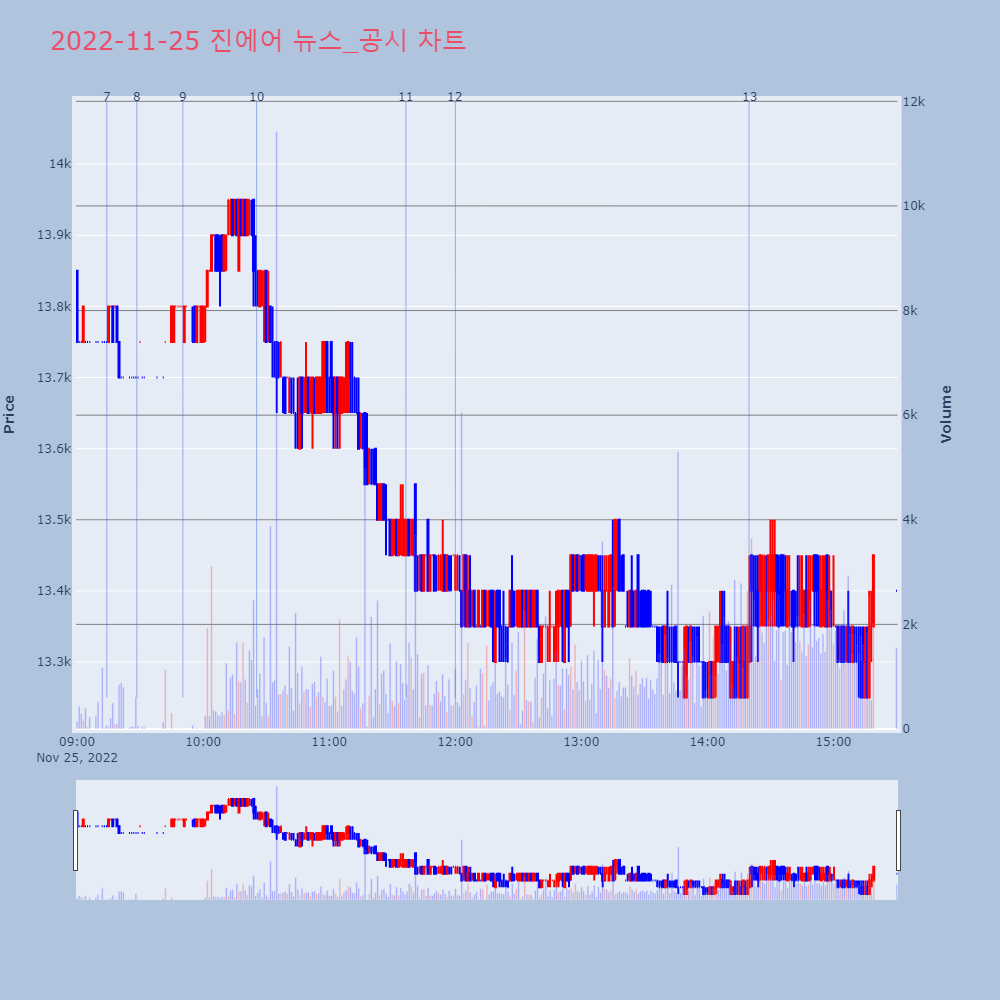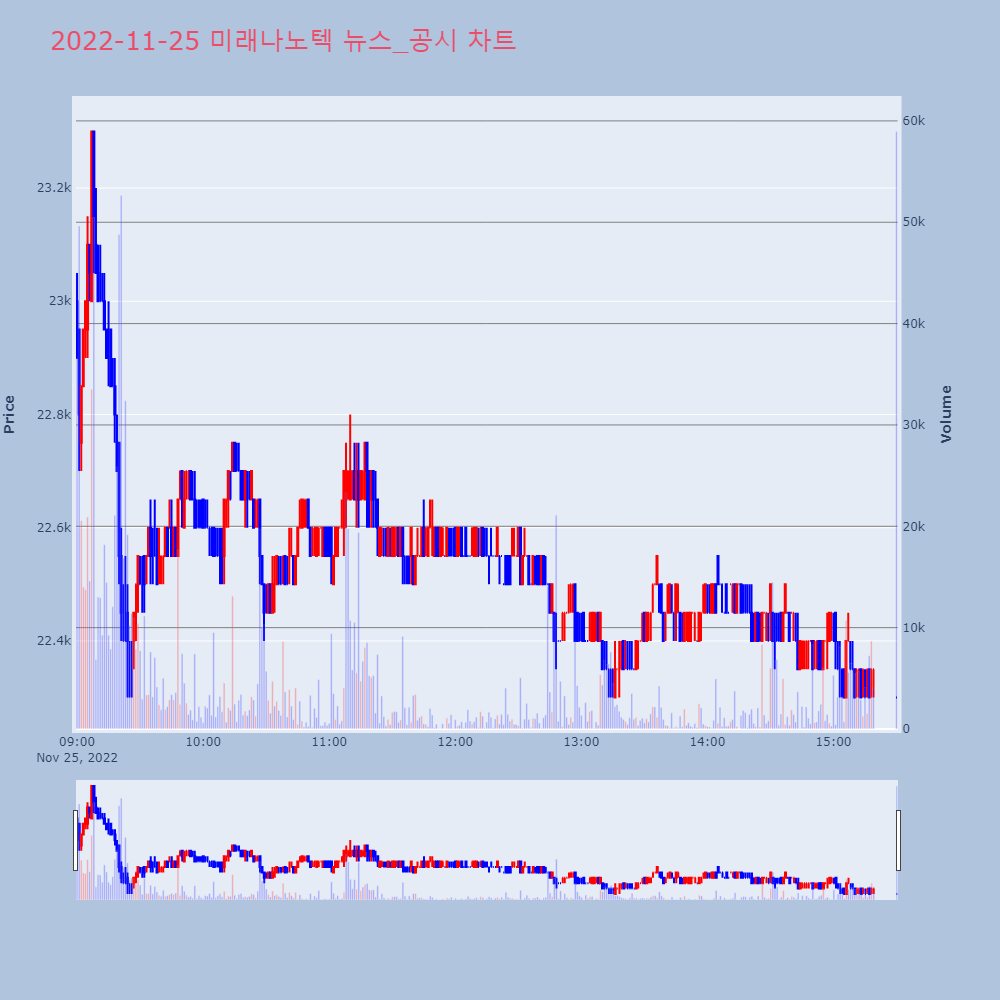 | 6 | 나래나노텍, +13.43% VI 발동나래나노텍이 VI가 발동했다. 전일 대비 13.43% | 조선경제 | 나래나노텍 | 2022-11-29 09:17:51 |