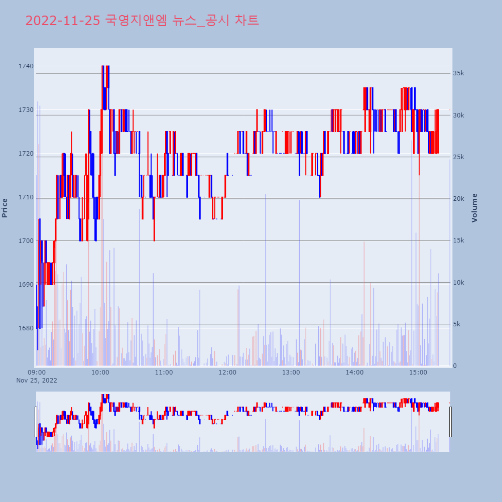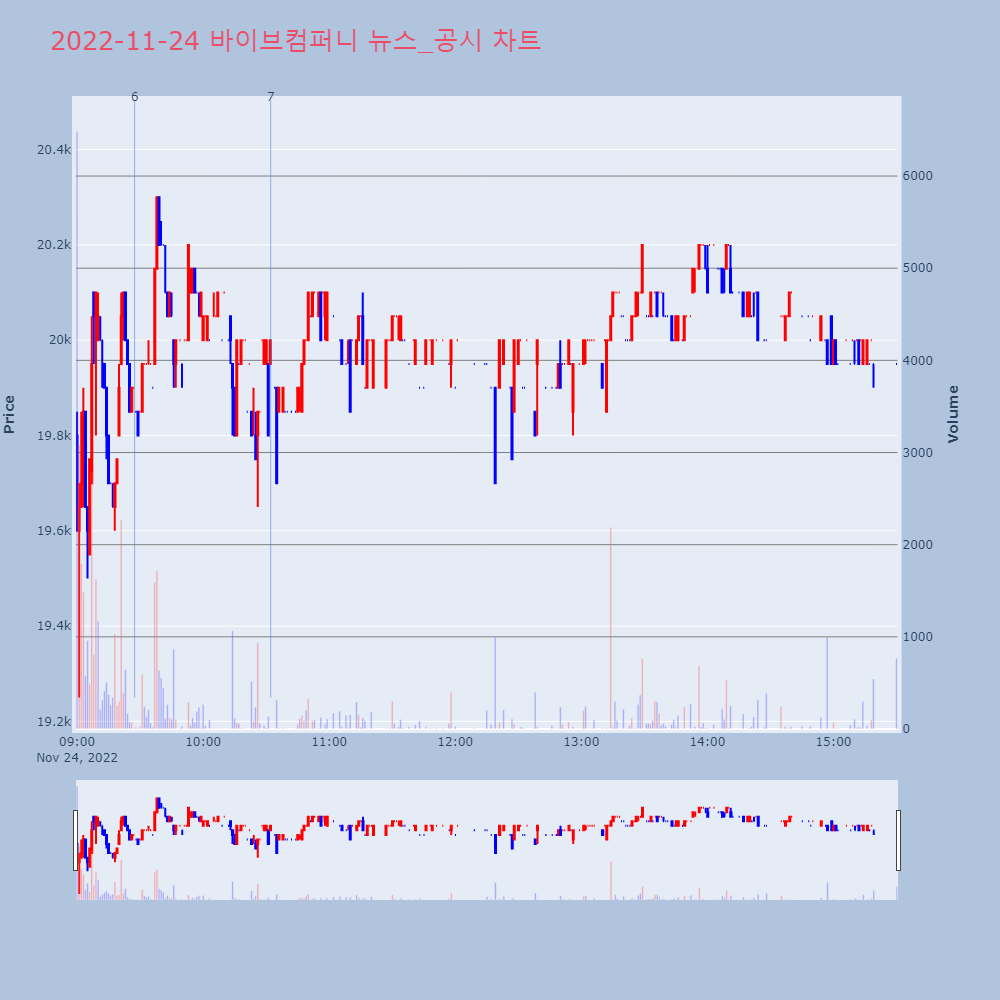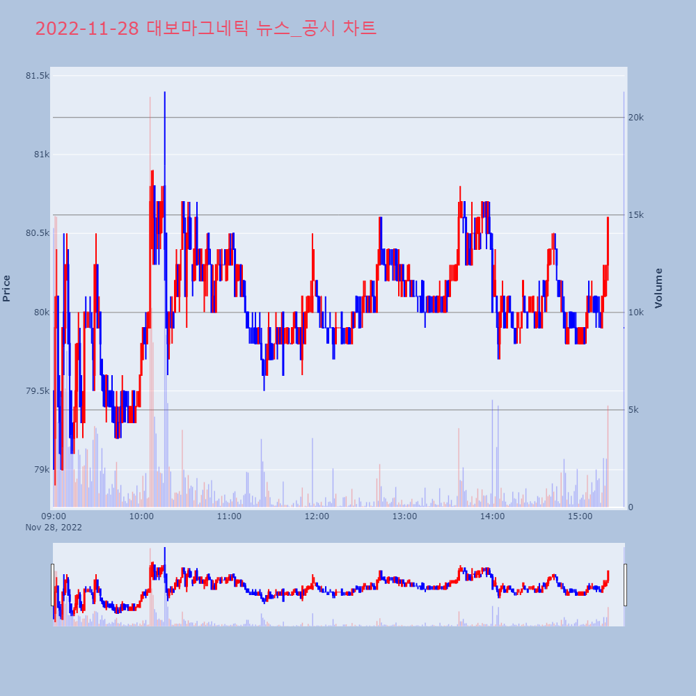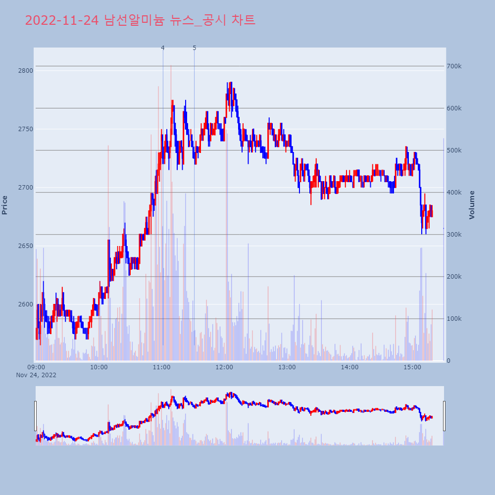 | 6 | 나래나노텍, +13.43% VI 발동나래나노텍이 VI가 발동했다. 전일 대비 13.43% | 조선경제 | 나래나노텍 | 2022-11-29 09:17:51 |