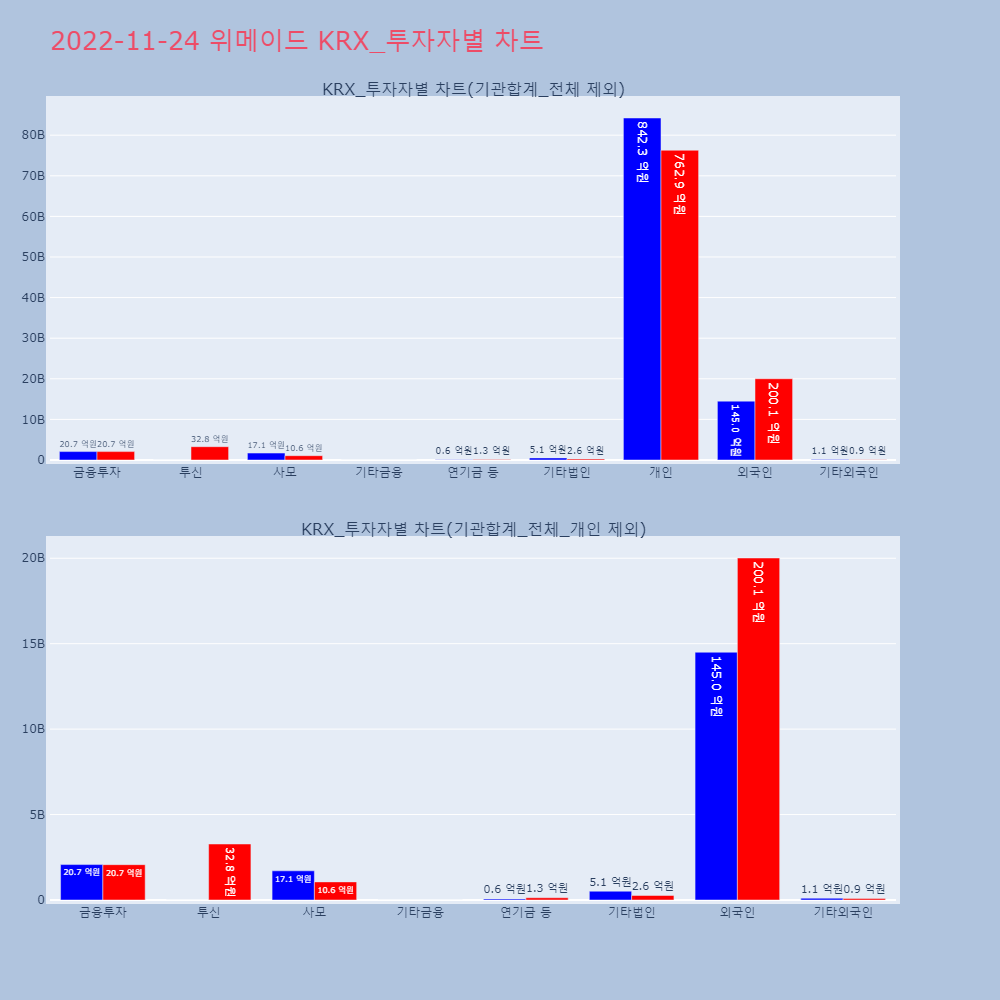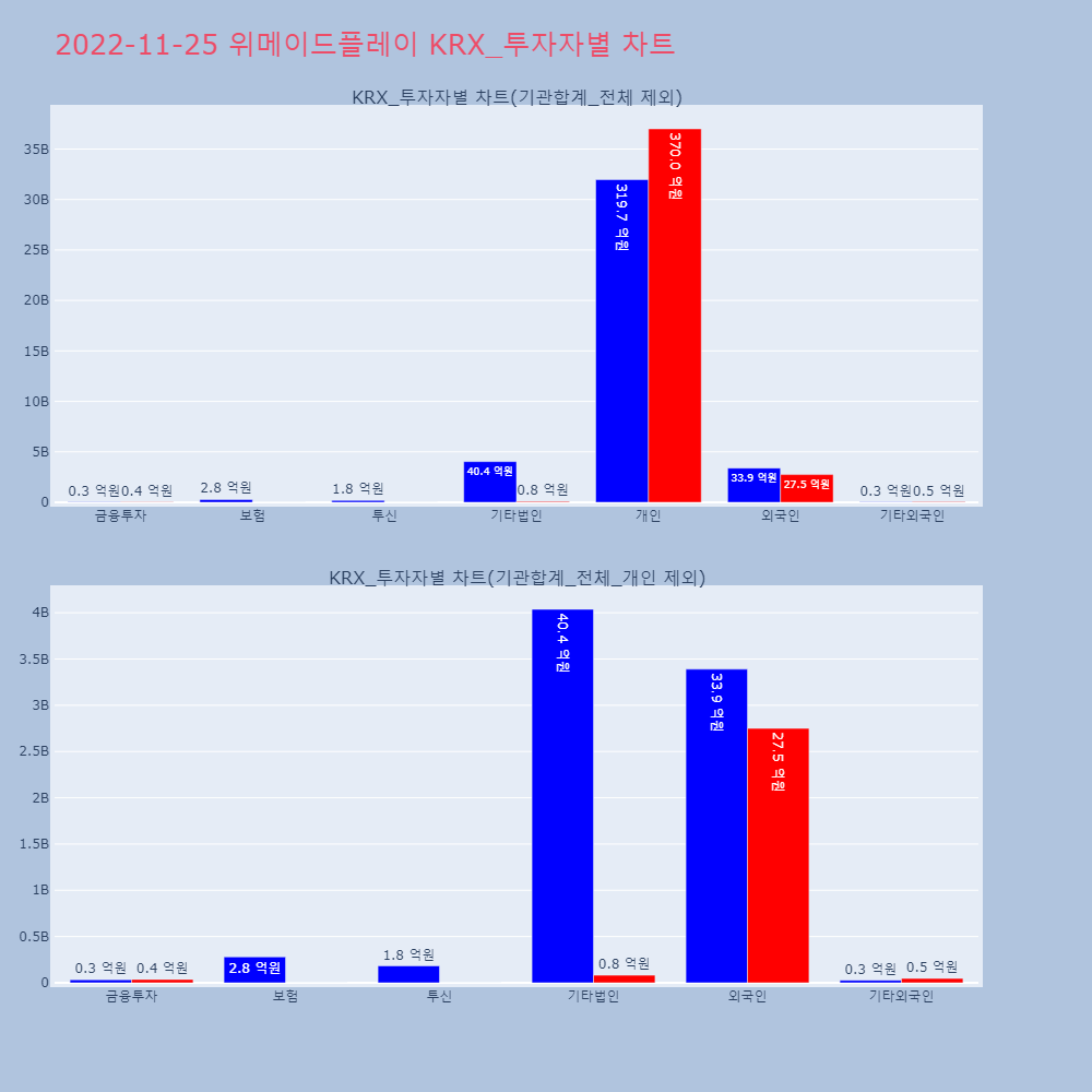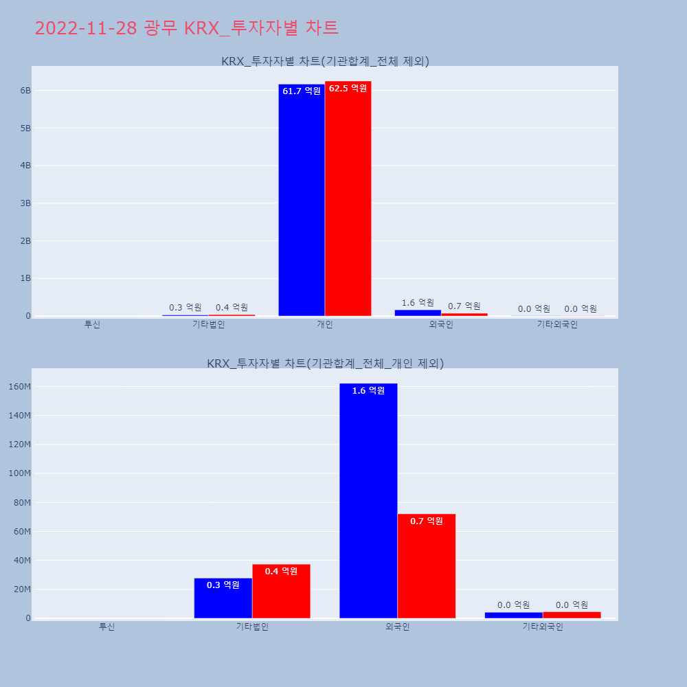 | 개인 | 2,296,477 | 2,301,987 | 5,510 | 32,151,941,600 | 32,237,918,750 | 85,977,150 |