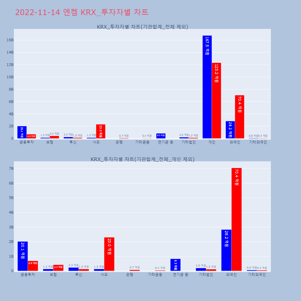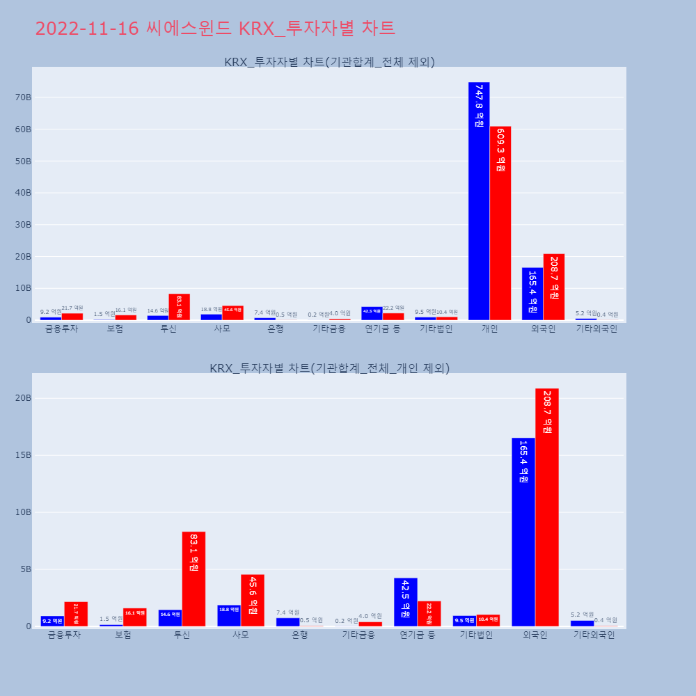 | 투자기관 | 거래량_매도 | 거래량_매수 | 거래량_순매수 | 거래대금_매도 | 거래대금_매수 | 거래대금_순매수 |