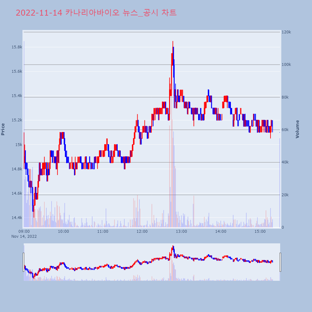 카나리아바이오(016790) -13.61%[종가: 16,500원]