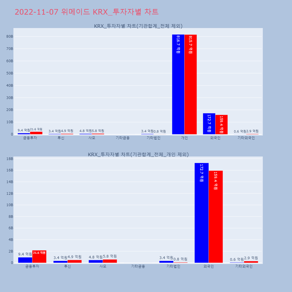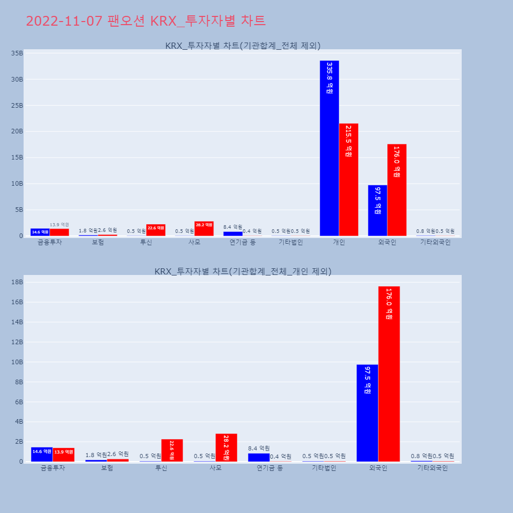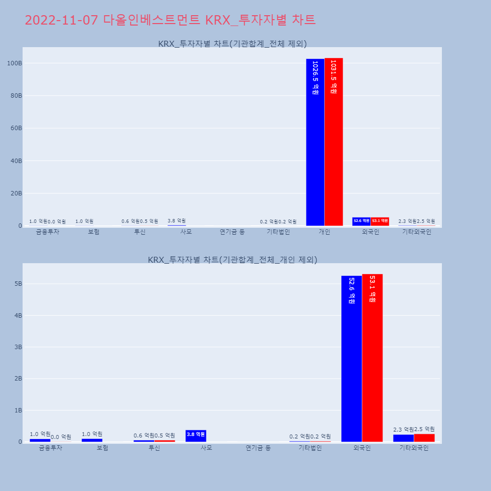 | 투자기관 | 거래량_매도 | 거래량_매수 | 거래량_순매수 | 거래대금_매도 | 거래대금_매수 | 거래대금_순매수 |