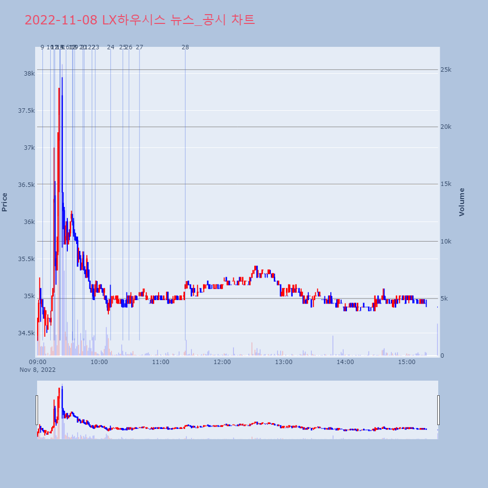 | 15 | LX하우시스, +13.55% VI 발동LX하우시스가 VI가 발동했다. 전일 대비 13.55% | 조선경제 | LX하우시스 | 2022-11-08 09:22:00 |